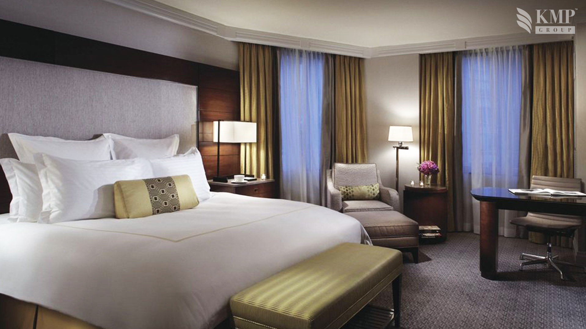 Expanded 1-bedroom suite (79 кв. м): гостиная, мини-кухня, спальня с кроватью king-size, гардеробная, ванная комната с ванной и душевой кабиной, гостевой туалет. Дополнительно: микроволновая печь. Расположены с 3 по 10 этаж. Вид на город.