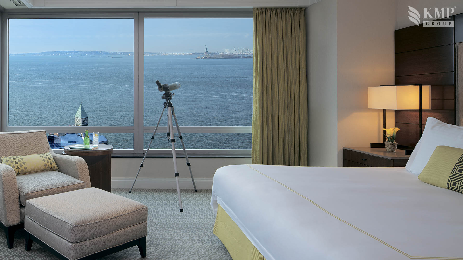 1-bedroom Statue of Liberty view suite (74 кв. м): гостиная, спальня с кроватью king-size, ванная комната с ванной и душем. Расположены с 3 по 12 этаж. Вид на Нью-Йоркскую бухту и статую Свободы.