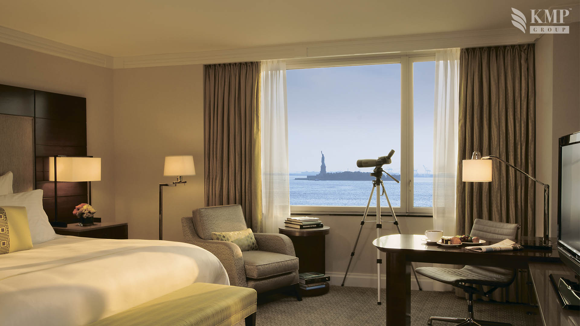 State of Liberty view room (40 кв. м): аналогичны номерам категории Deluxe room, но имеют вид на Нью-Йоркскую бухту и статую Свободы. Возможно объединение с номером The Ritz-Carlton suite.