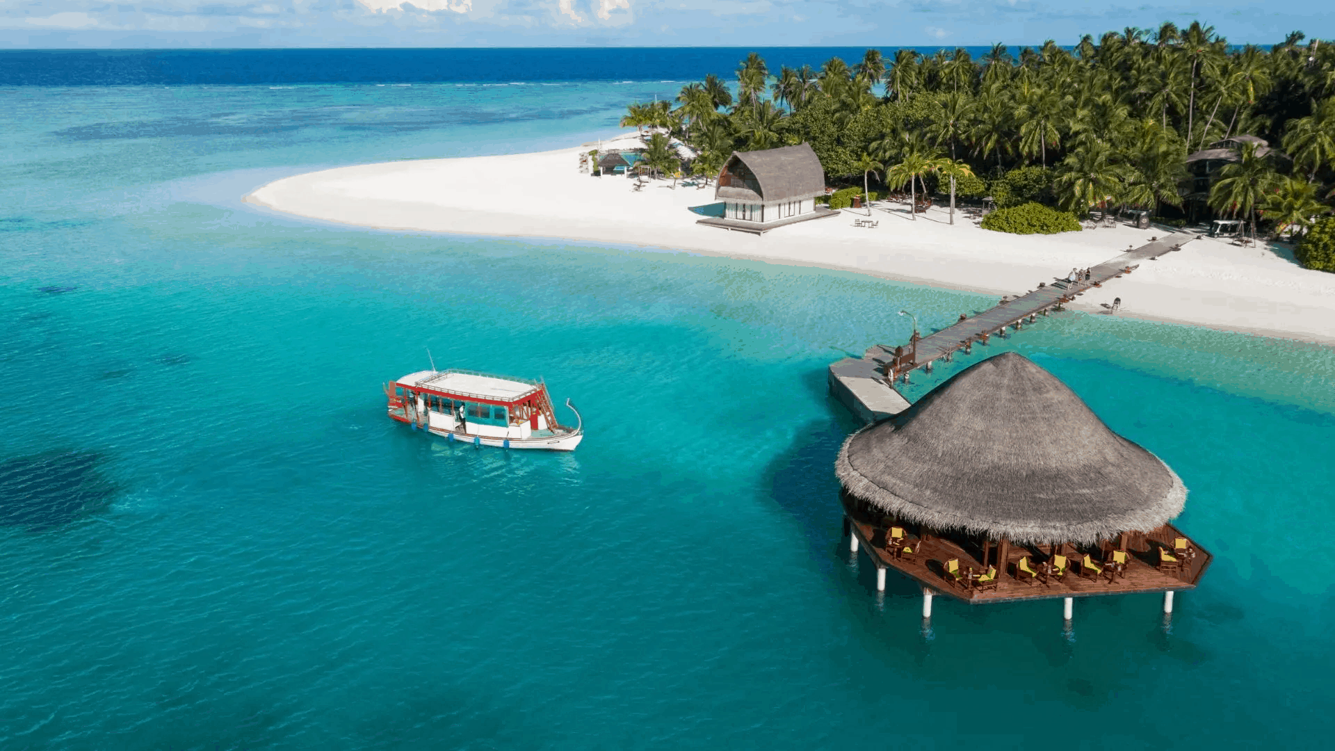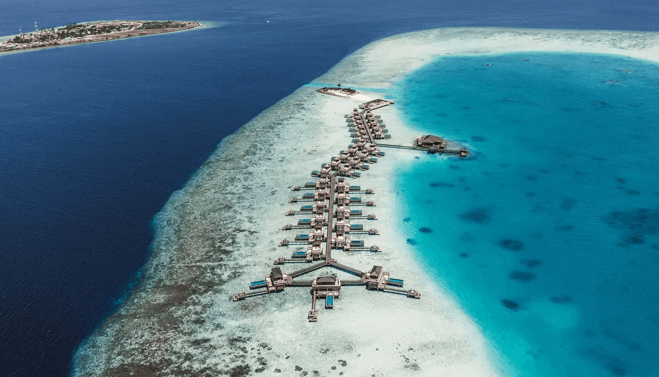До курортного отеля можно добраться от международного аэропорта Мале на гидросамолете за 45 минут или на самолете внутренних авиалиний за 60 минут.