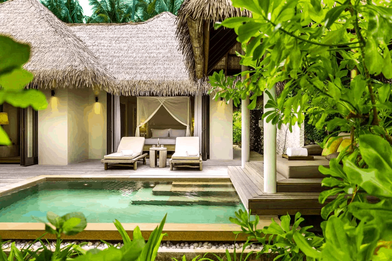Роскошный курортный отель Maalifushi by COMO с панорамным видом на Индийский океан находится на острове Маалифуши. Здесь есть все, что нужно для роскошного отдыха. Элегантные виллы построены из новозеландской сосны с тростниковыми крышами по проекту японского архитектора Koichiro Ikebuchi и расположены на земле или на сваях над водой.