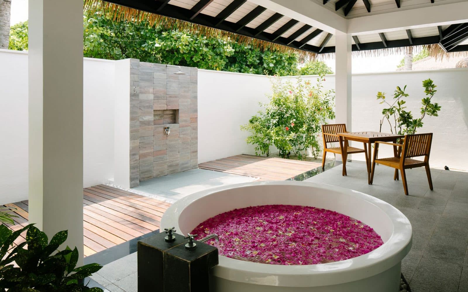 К услугам гостей виллы вдоль пляжа и над водой. Гости могут позаниматься в фитнес-центре. В центре водных видов спорта можно заняться различными видами активного отдыха, в том числе покататься на банане, взять напрокат лодки, каяки, подводное плавание, доски для серфинга с веслом, волны и виндсерфинг. Гости могут посетить традиционные музыкальные и танцевальные представления, поиграть в настольные игры и заняться сноркелингом, а также покормить рыб и посмотреть кино на пляже. Кроме того, гости могут посетить занятия йогой с захватывающим видом на восход или закат. В одном из баров курортного отеля работают 2 бара. В главном ресторане курортного отеля Palms подают завтрак, обед и ужин «шведский стол» и блюда по меню. В распоряжении гостей крытая и открытая террасы с видом на лагуны. В ресторане Thari подают блюда по сюрпринам. В ресторане подают изысканные блюда местной мальдивской, тайской, японской и сингапурской кухни в уютной обстановке под звездным небом.