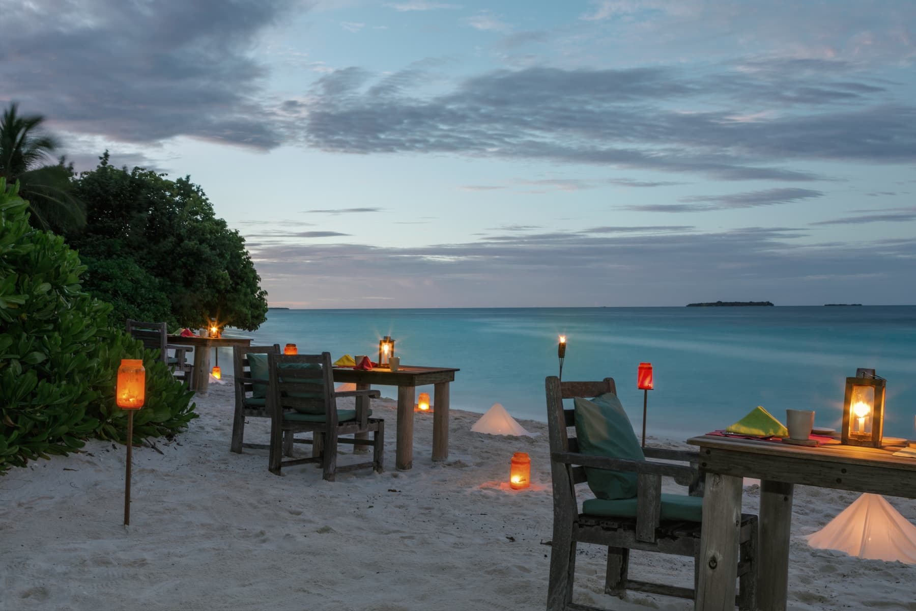 Из всех очень просторных номеров и вилл этого курортного эко-отеля можно напрямую пройти на частный пляж. В отеле можно бесплатно взять напрокат велосипеды и отправиться исследовать остров. Гостям предоставляют услуги дворецкого, называемого Мистер или Мисс Пятница. Кроме того, гости могут отдохнуть в кинотеатре Paradiso на открытом воздухе, посмотреть на кольца Сатурна в высокотехнологичной обсерватории, посетить 6 различных ресторанов и залы, где подают домашний шоколад и мороженое, а также отведать 500 сортов вина на выбор. Помимо этого, гостям предлагается изучить искусство выдувания стекла на единственной на Мальдивах стекольной студии, бесплатно заняться немоторизованными водными видами спорта или отправиться в путешествие на роскошной яхте Soneva in Aqua с 2 спальнями, принадлежащей курортному отелю Soneva. Также гости могут провести вечер на удаленной частной песчаной отмели, что позволит полюбоваться звездами в полном уединении.
