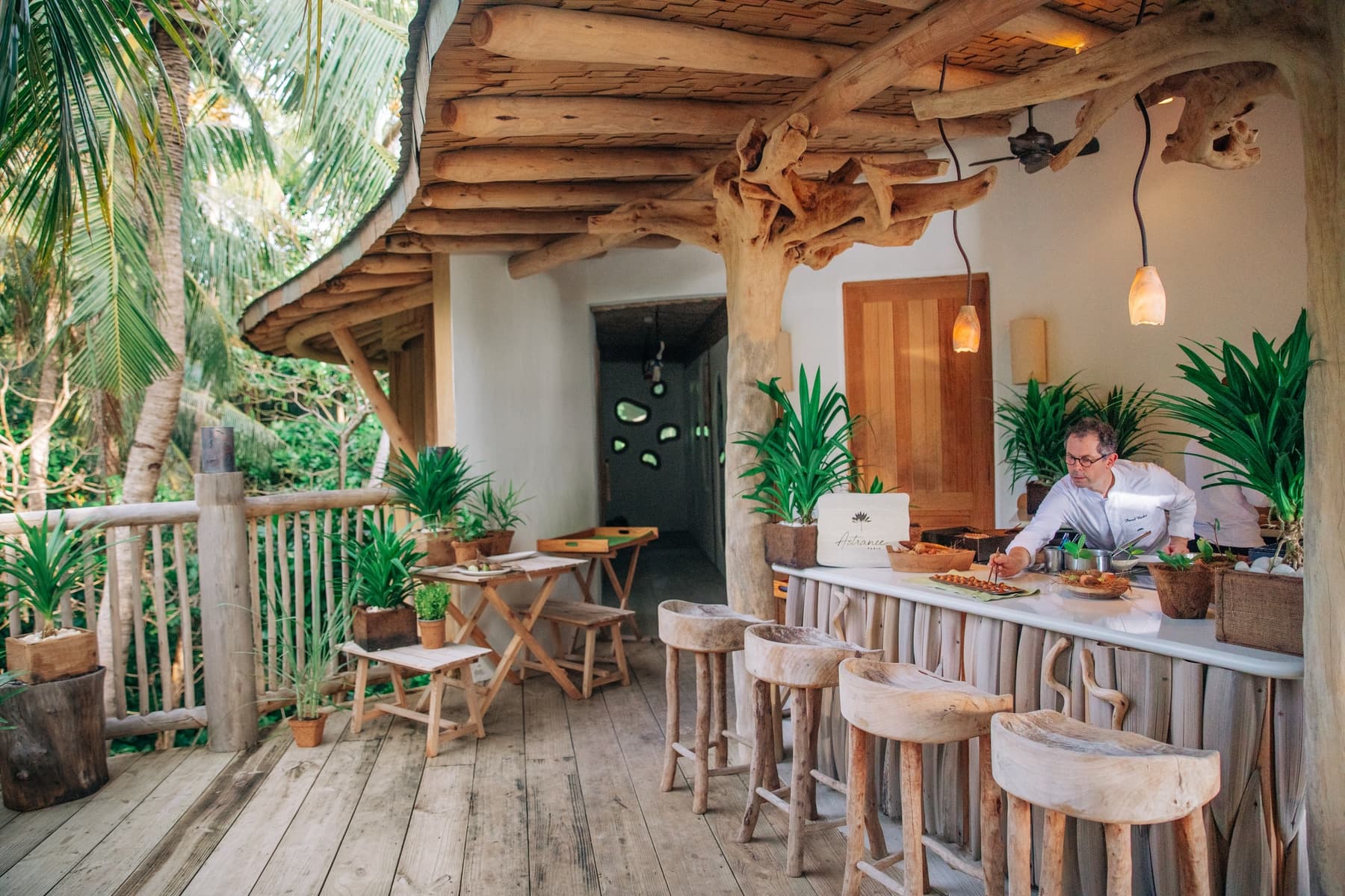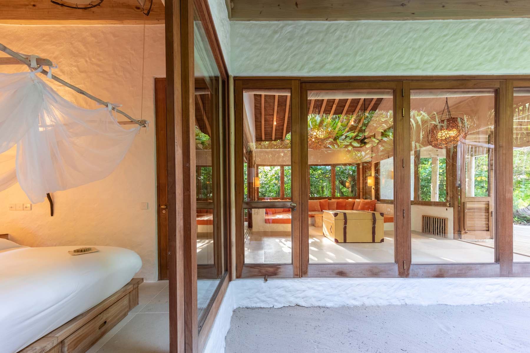 Курортный отель Soneva Fushi расположен на частном острове атолла Баа, который является биосферным заповедником под защитой ЮНЕСКО. Трансфер на гидросамолете до международного аэропорта Мале занимает 30 минут.
