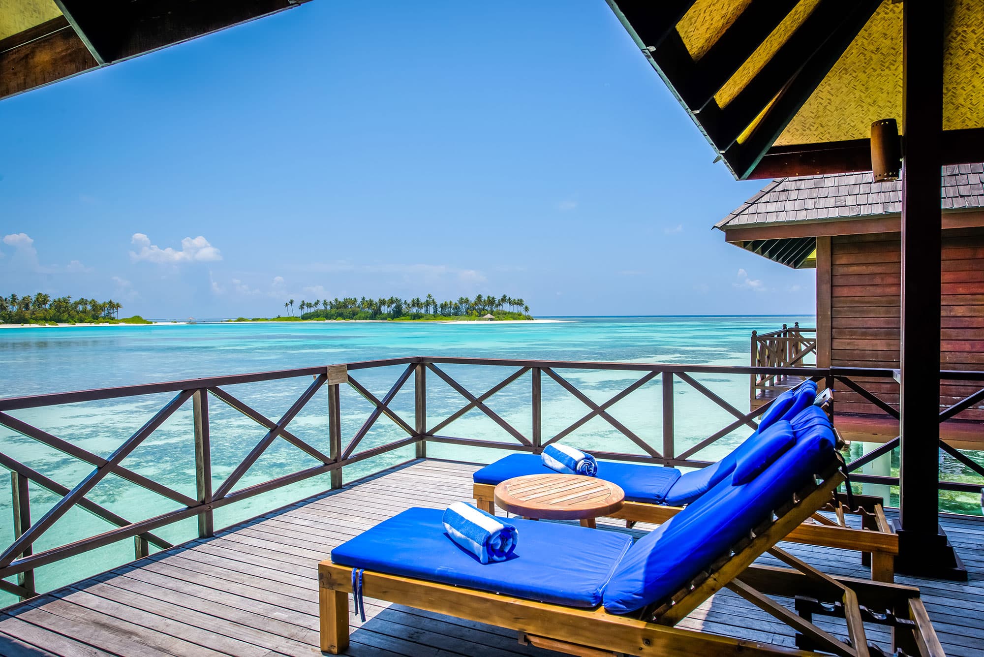 Курортный спа-отель Olhuveli Beach находится в 45 минутах езды на катере от международного аэропорта Мале.