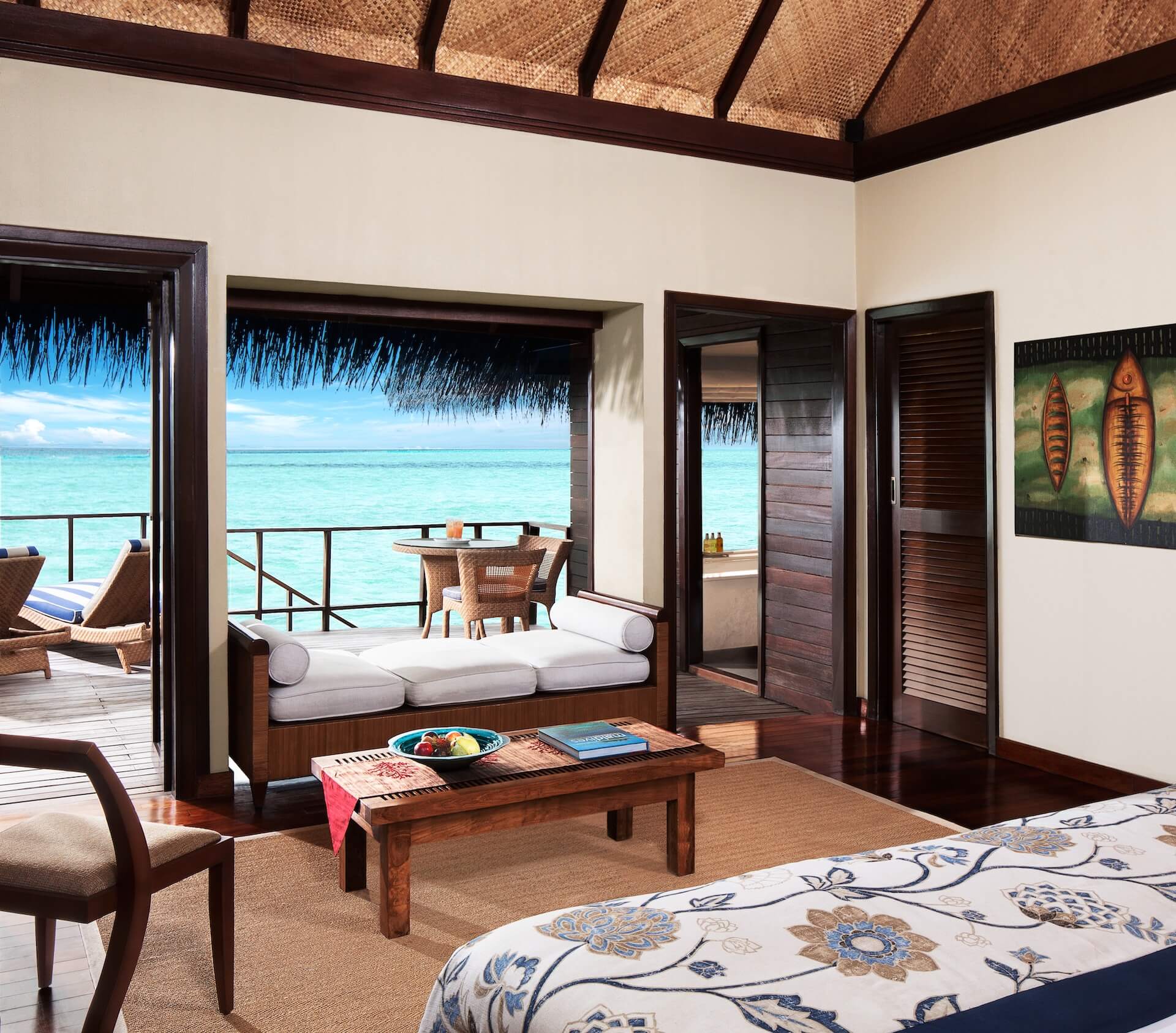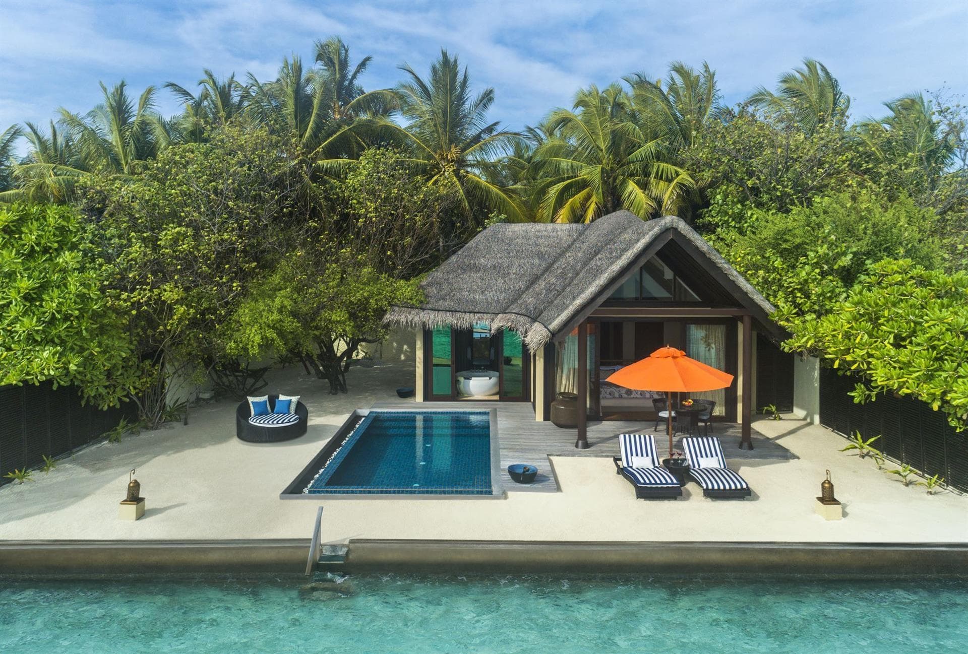 Из помещений можно выйти на собственную террасу для загара и балкон. К числу удобств повышенного комфорта относятся кофемашина Nespresso и док-станция для iPod. Ванная комната укомплектована тропическим душем и роскошными туалетно-косметическими принадлежностями. В номерах предоставляются тапочки и набор для чистки зубов. Номера оснащены электрическим чайником и телевизором с китайскими кабельными каналами.