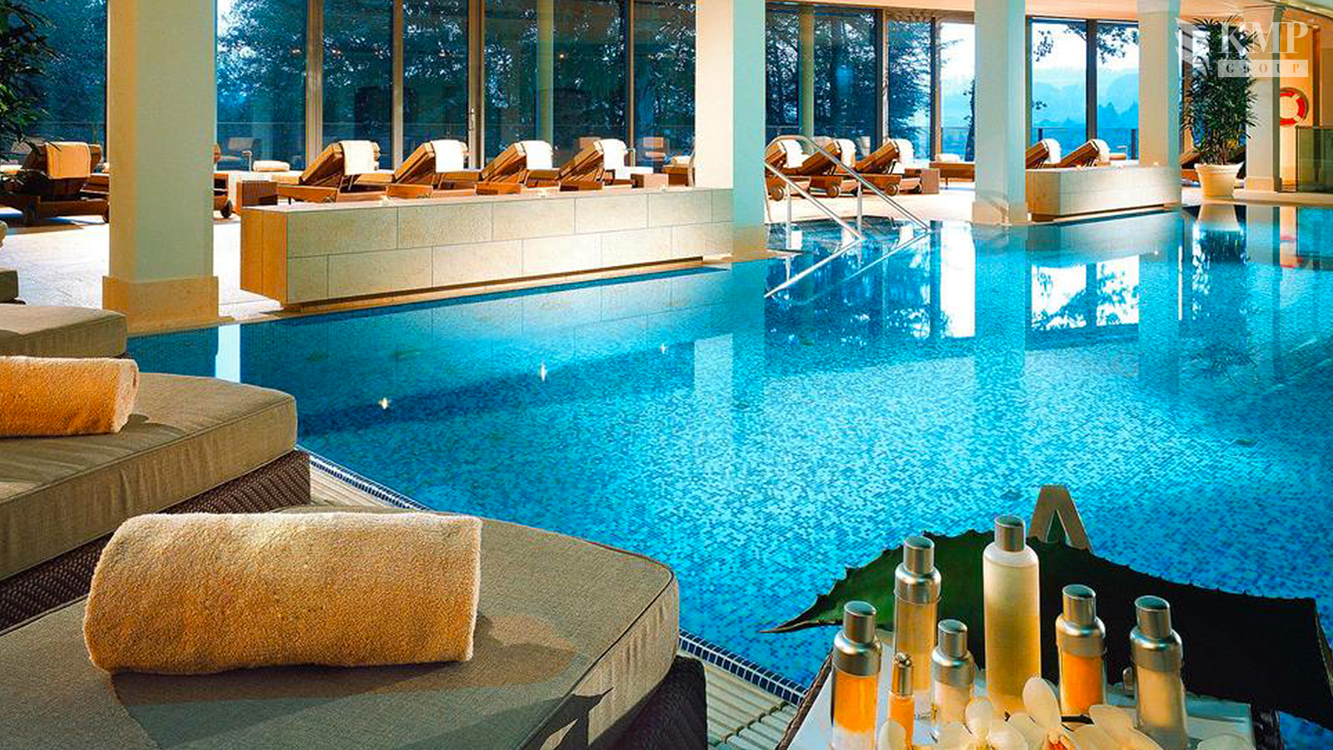 Mozart Suite (240 кв. м). Спальня с удобной кроватью, ванная комната, оборудованная гидромассажной ванной, душем и сауной, расположились на нижнем ярусе двухуровневого номера. Этажом выше гостей ждет терраса, гостиная и мини-кухня. Также есть камин, фортепьяно и персональный лифт. Из окон открывается вид на озеро. Предоставляются услуги личного камердинера.