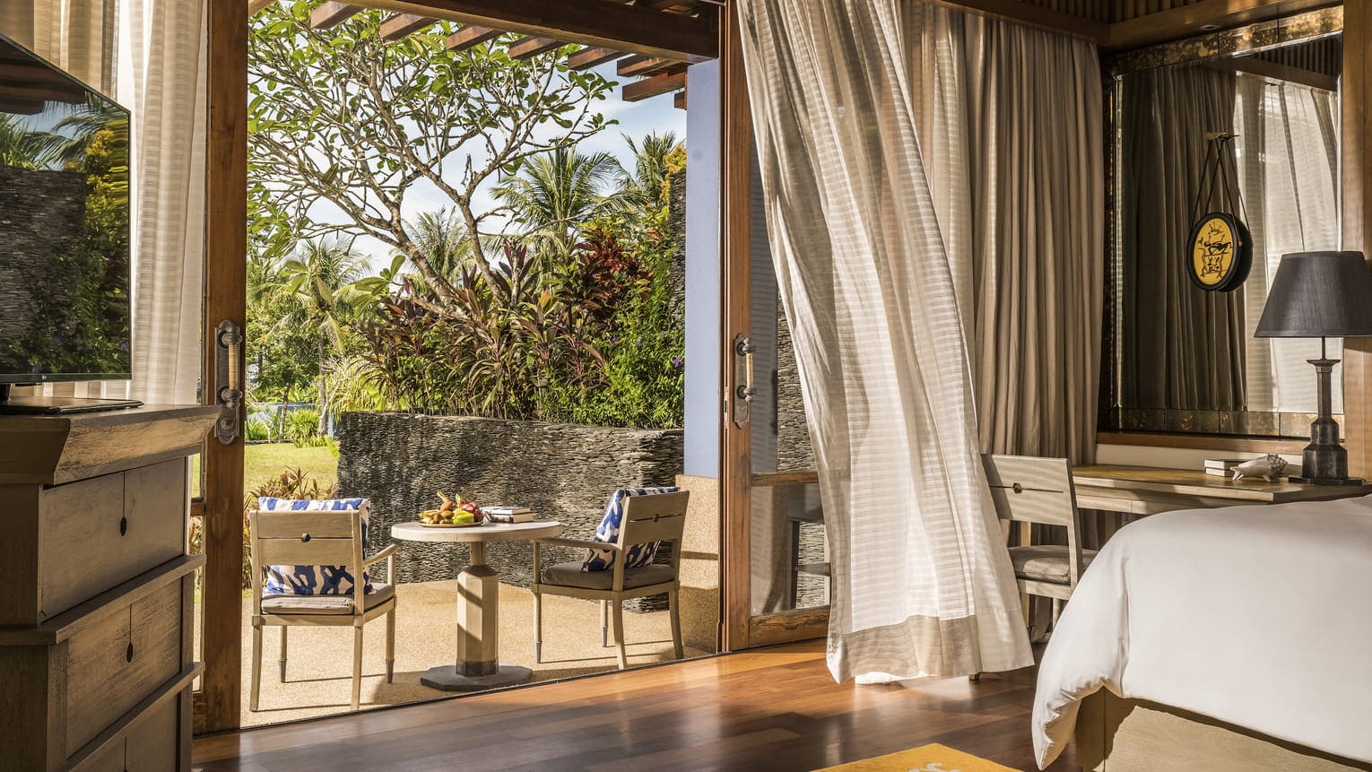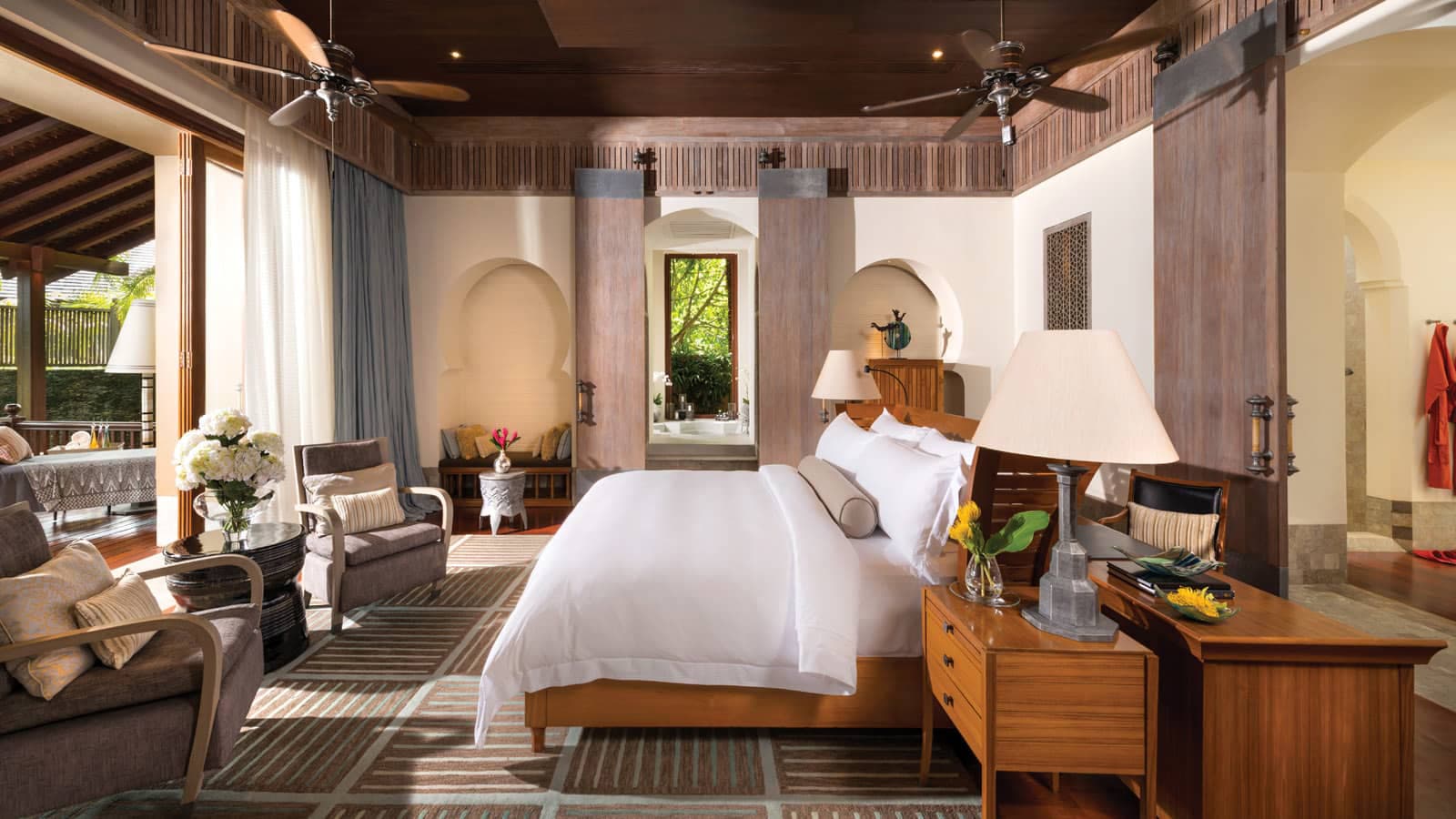 Номера всех типов с деревянной мебелью и высоким потолком оформлены в стиле, навеянном малайской и мавританской архитектурой. В числе удобств — телевизор с плоским экраном, кофемашина для эспрессо и собственная ванная комната с органическими туалетно-косметическими принадлежностями, халаты юката. В некоторых номерах установлена ванна-хаммам, а в других номерах душ расположен за пределами номера.