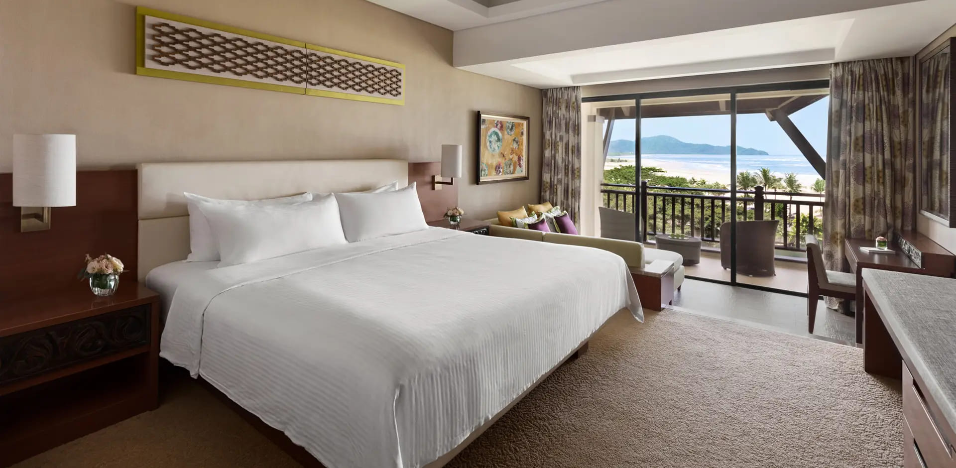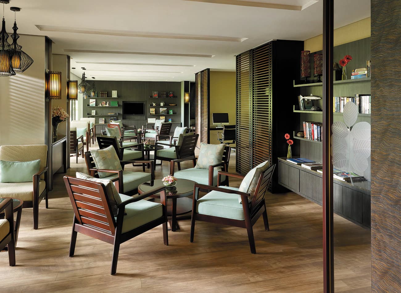 Со вкусом оформленные номера в естественных тонах оснащены телевизором с плоским экраном и мини-баром, принадлежностями для чая/кофе. Предоставляются халаты и высококачественные туалетно-косметические принадлежности марки Shangri-La.