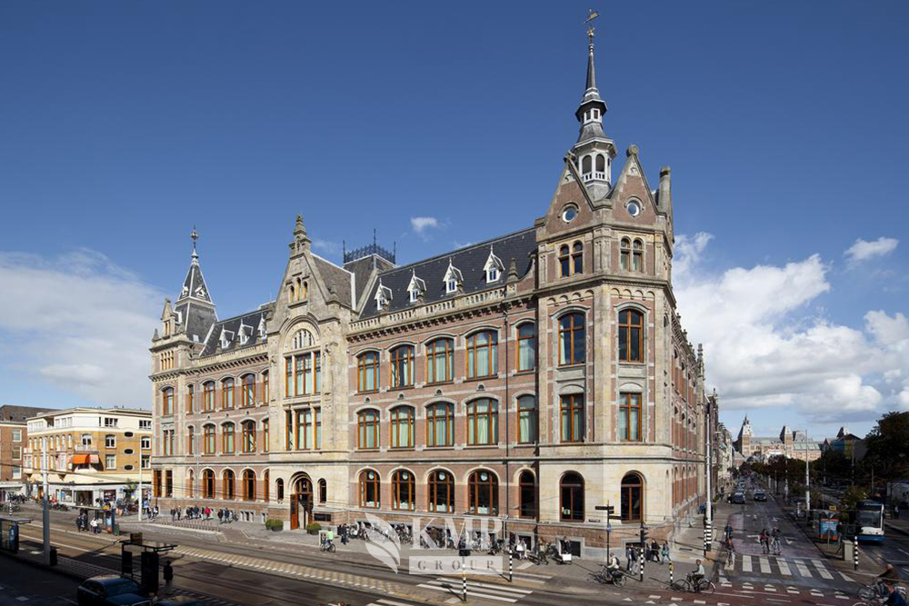 Junior suite (52 кв. м). Спальня, ванная комната с ванной и душевой кабиной с функцией «тропический дождь». Вид на внутренний двор, улицы Van Baerlestraat, Paulus Potterstraat, Атриум.