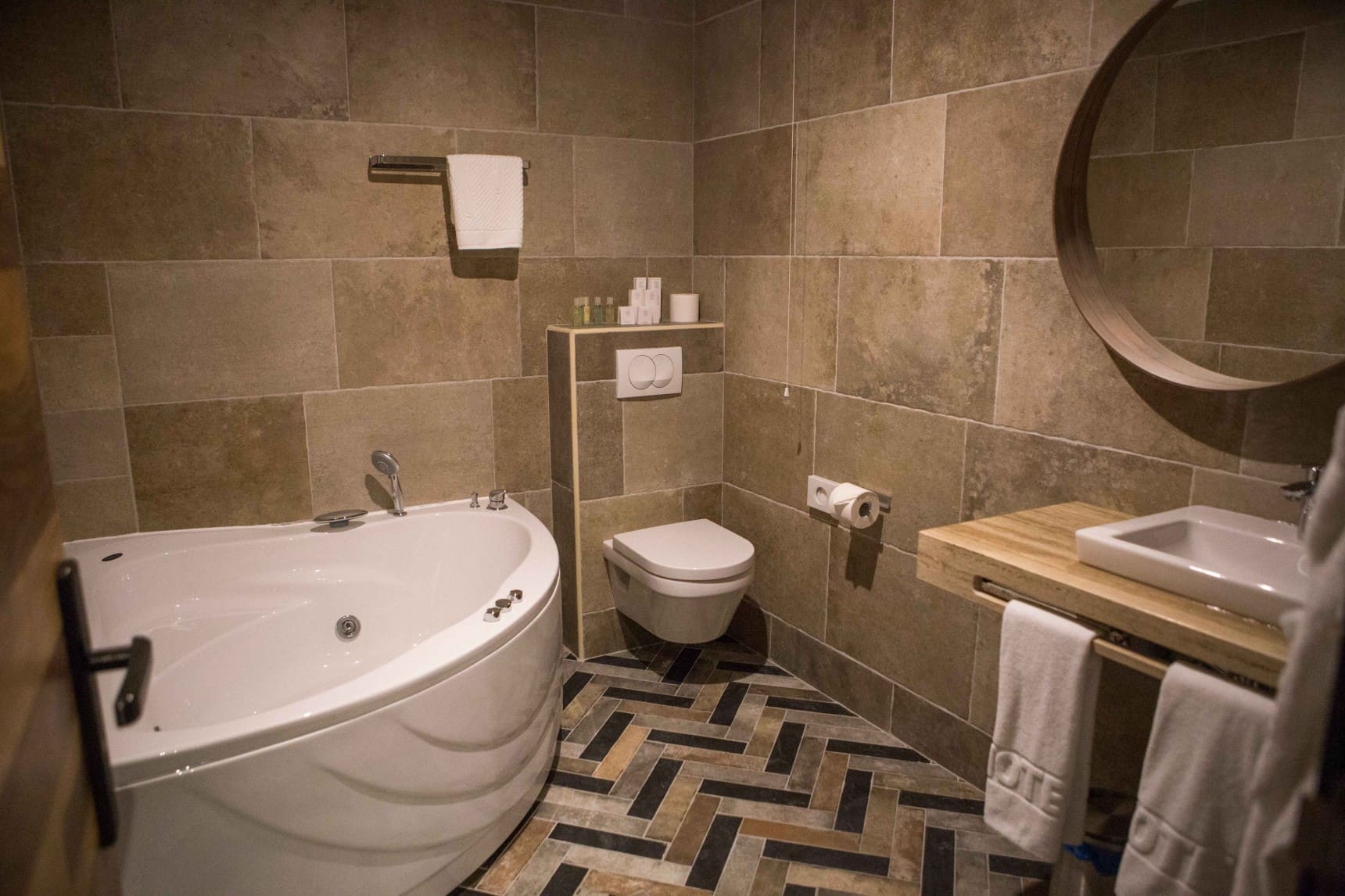 24 номеров, ресторан, бар, летняя терраса, SPA-центр (2 открытых бассейна, крытый бассейн, сауны, хамам, тепидариум, дорожки Кнейпа, джакузи, соляная комната, массаж, процедуры по уходу за лицом и телом), детская игровая комната, детская площадка, конференц-зал (до 80 человек).