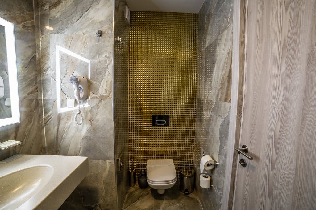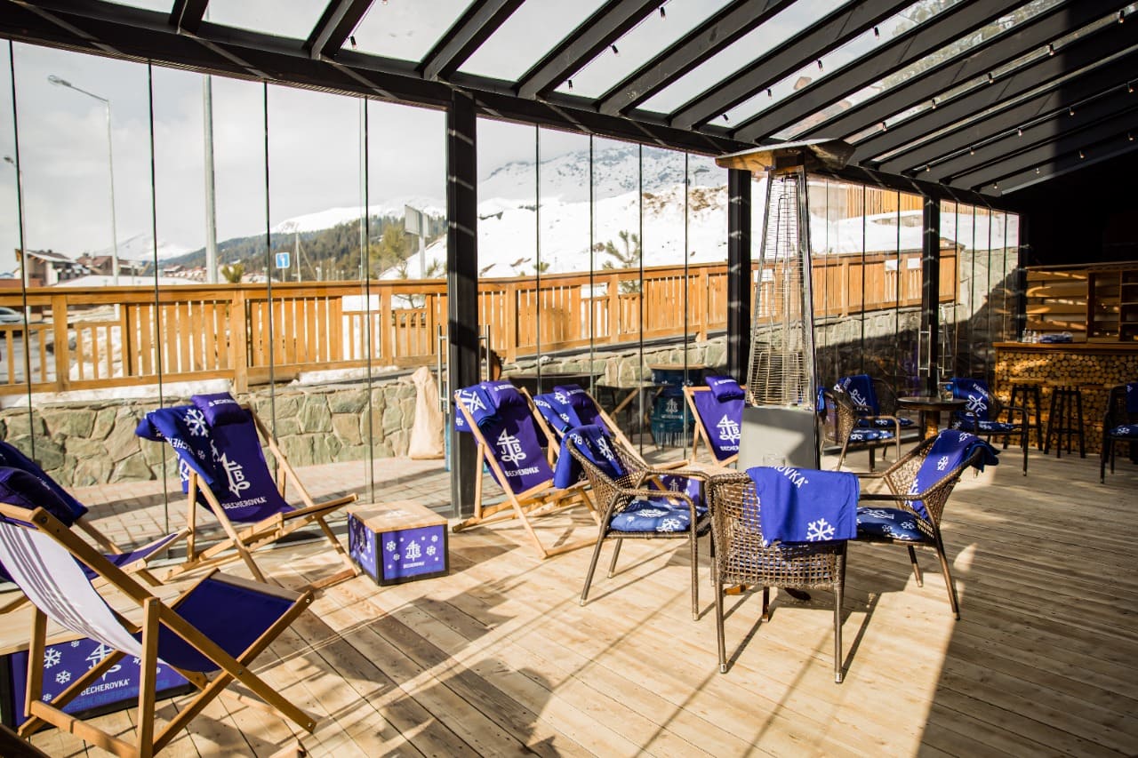 Royal Luxe (37 кв.м.): Прекрасный номер с роскошной видовой террасой, 7-ми метровыми потолками, с отделенной спальней с одной двухспальной кроватью размера кинг-сайз и прекрасно декорированными гостиной и зонами отдыха. Номер Royal Люкс в зоне отдыха декорирован дизайнерской мебелью ручной работы и оборудован всем необходимым для максимального комфорта и продуман до мелочей, прекрасно подойдет для отдыха в кругу семьи, общения с друзьями или приема гостей. Просторная спальня в номере Royal Люкс оборудована зеркальным LED телевизором диагональю 32 дюйма и Меню подушек для ощущения полного уюта, а панорамное остекление окон позволит любоваться горными пейзажами. Номер оснащен ванной комнатой с душем с нотками роскоши в виде золотой мозаики.
