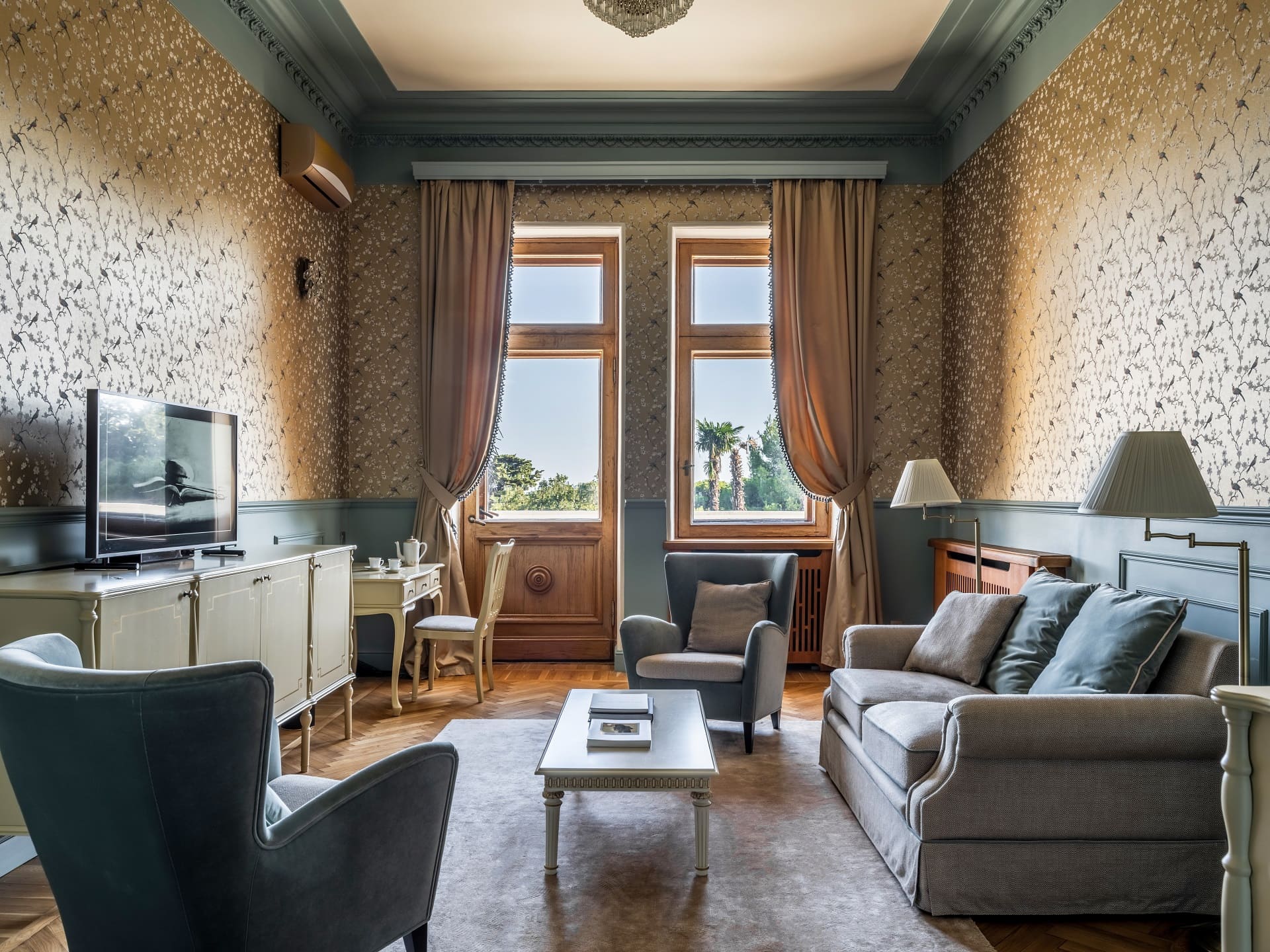 Каждый из 14 номеров повышенной площади, с пятиметровыми потолками оформлен в индивидуальном стиле, в каждом – своя огромная терраса и потрясающий панорамный вид на Мисхорский парк или на море.