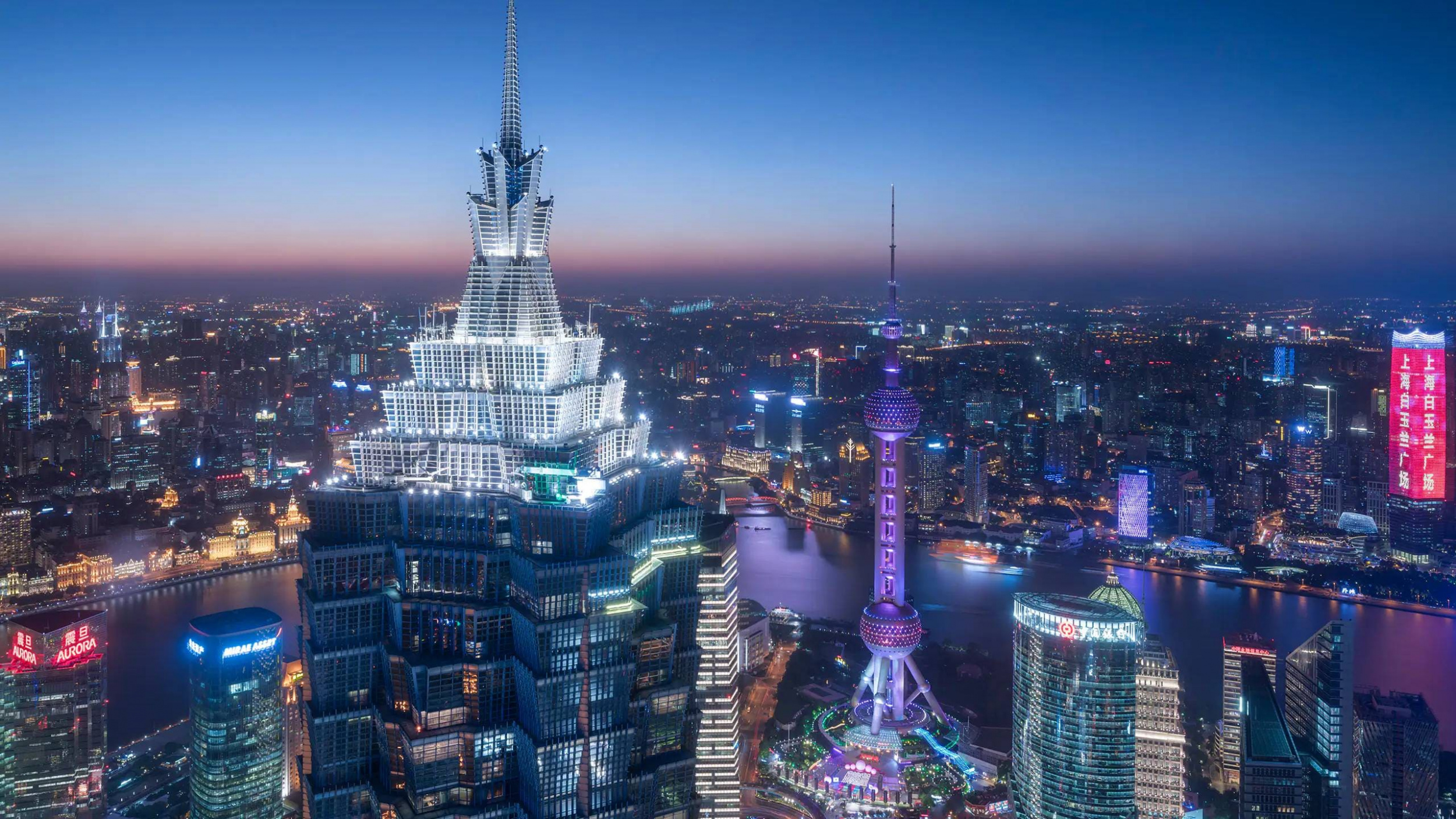 Grand room (40 кв. м). Спальня с кроватью king-size, queen-size или двумя отдельными кроватями, ванная комната с ванной и отдельной душевой кабиной. Вид на небоскребы района Pudong.