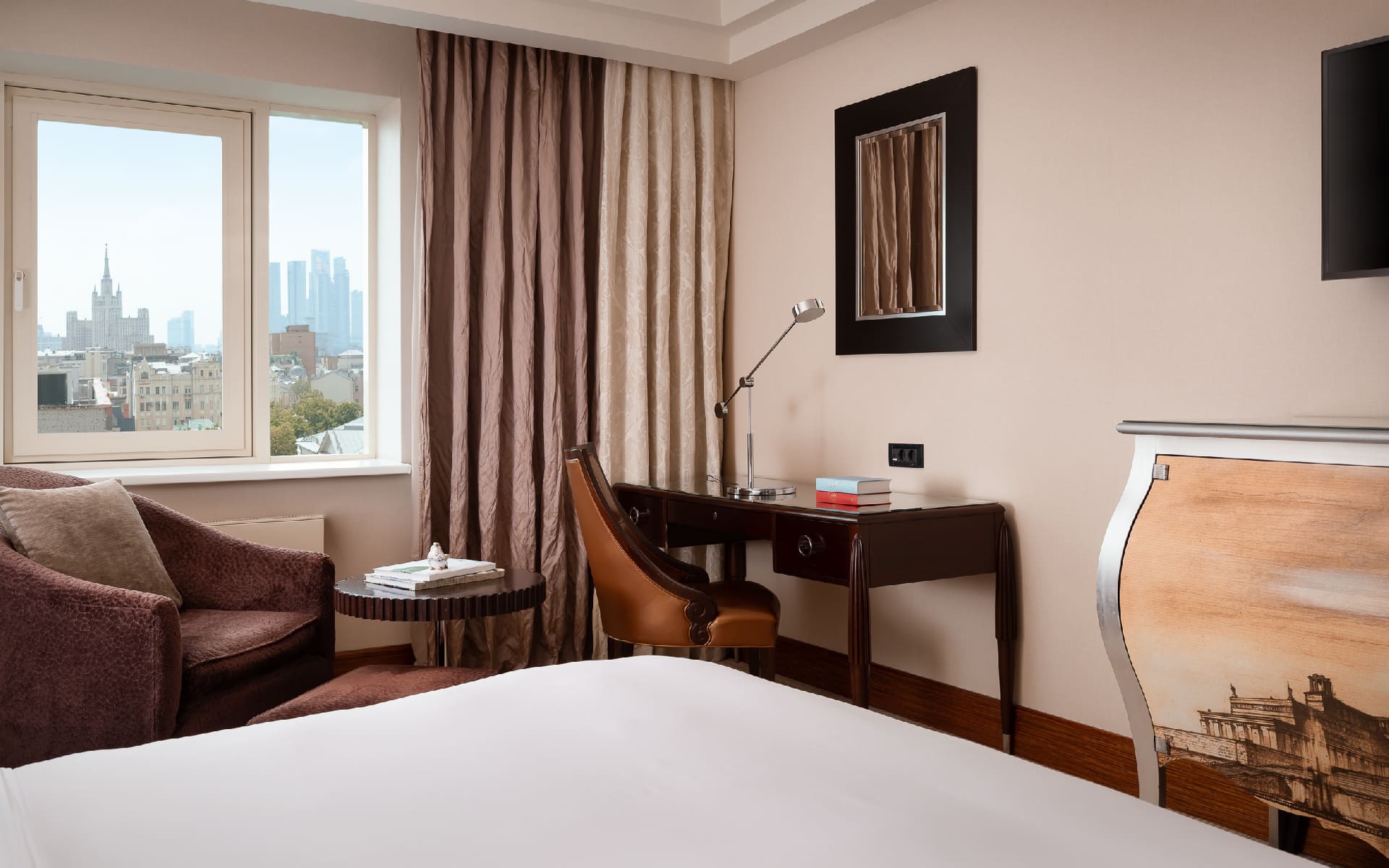 Элегантные номера отеля InterContinental Moscow Тверская обставлены мебелью из темного дерева и декорированы роскошными тканями. В распоряжении гостей док-станция для iPod, 42-дюймовый телевизор с плоским экраном, сейф для ноутбука и другие современные удобства.