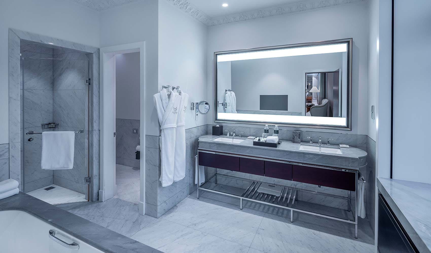 Представительский люкс (от 56 кв. м). Каждый Представительский люкс имеет уникальный дизайн интерьера, свою атмосферу и историю. В этих номерах останавливались мировые звезды, известные политические и культурные деятели, среди которых Пьер Карден, Шэрон Стоун, Элтон Джон. Один из Представительских люксов — любимый номер балерины Дианы Вишнёвой. Из окон открывается вид на Театральную площадь и Театральный проезд.