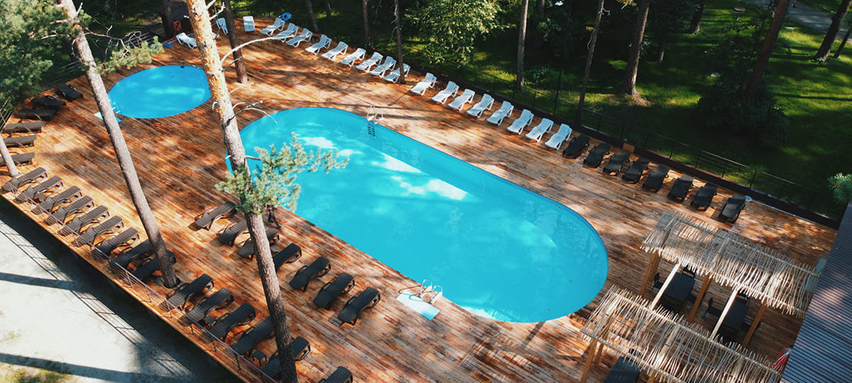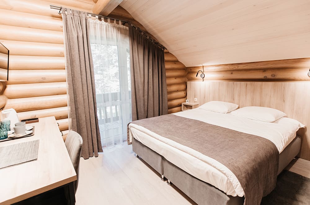 Все дома построены из оцилиндрованного бревна. Комплекс предлагает коттедж Апартаменты, 5 домиков шале, 22 номера различных категорий. В летний период Вы можете выбрать любой из 25 альпийских домиков.