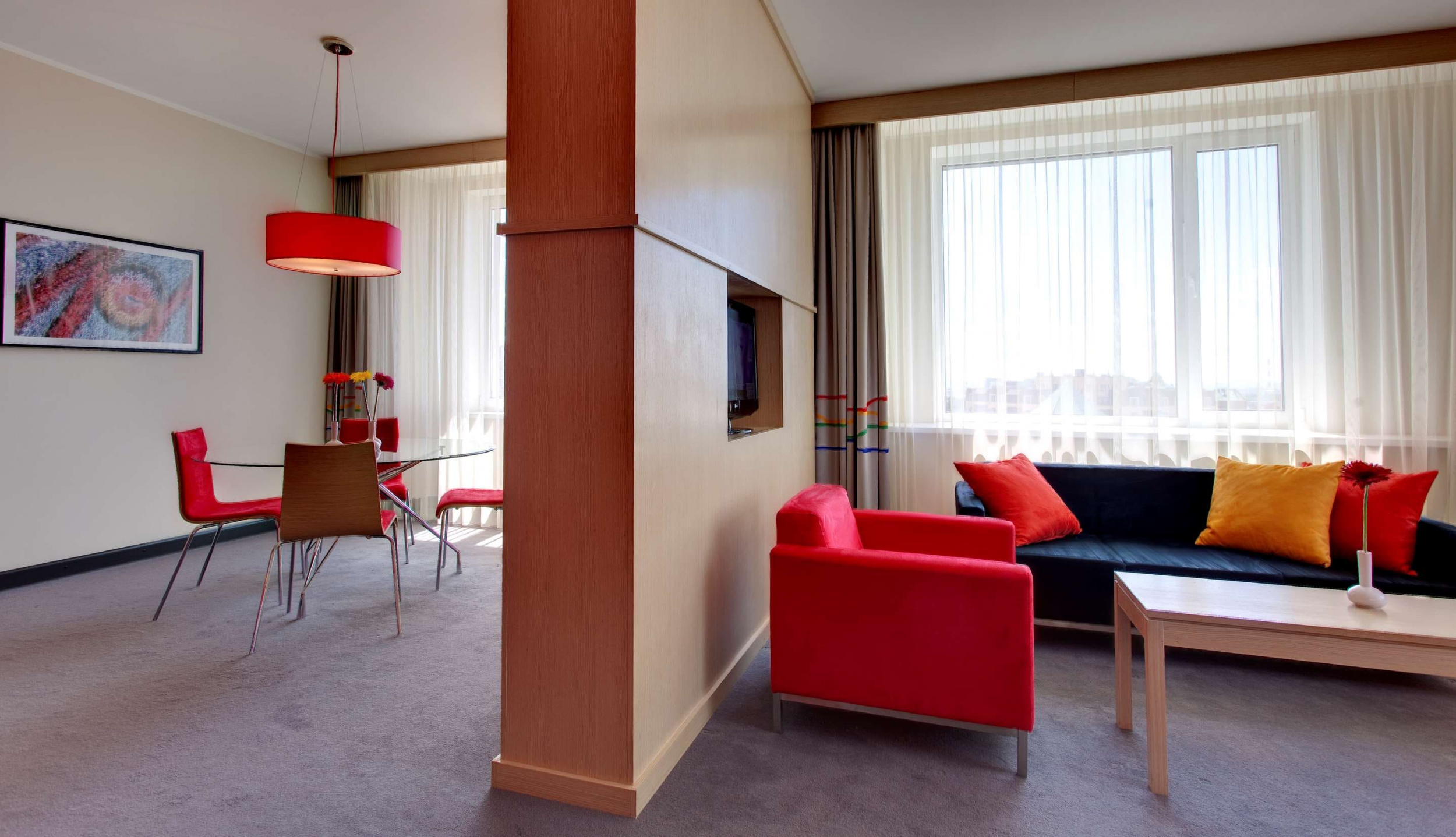 Отель предлагает гостям 151 номер с элегантными интерьерами, в которых есть все необходимое для того, чтобы расслабиться и восстановить силы после долгого дня прогулок по Казани. Выберите один из номеров Standard и номеров бизнес-класса или люкс с одной спальней. Каждый номер оснащен бесплатным беспроводным высокоскоростным Интернетом. Кроме того, в отеле есть 10 совмещаемых номеров для тех, кто путешествует большой компанией, и 2 номера, оборудованные для гостей с особыми потребностями.