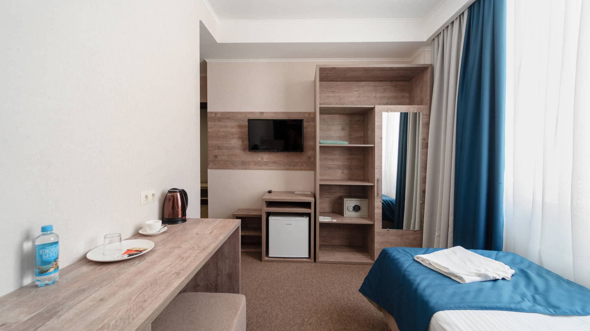Кондиционер, телевизор, телефон, сейф, мини-бар, фен.