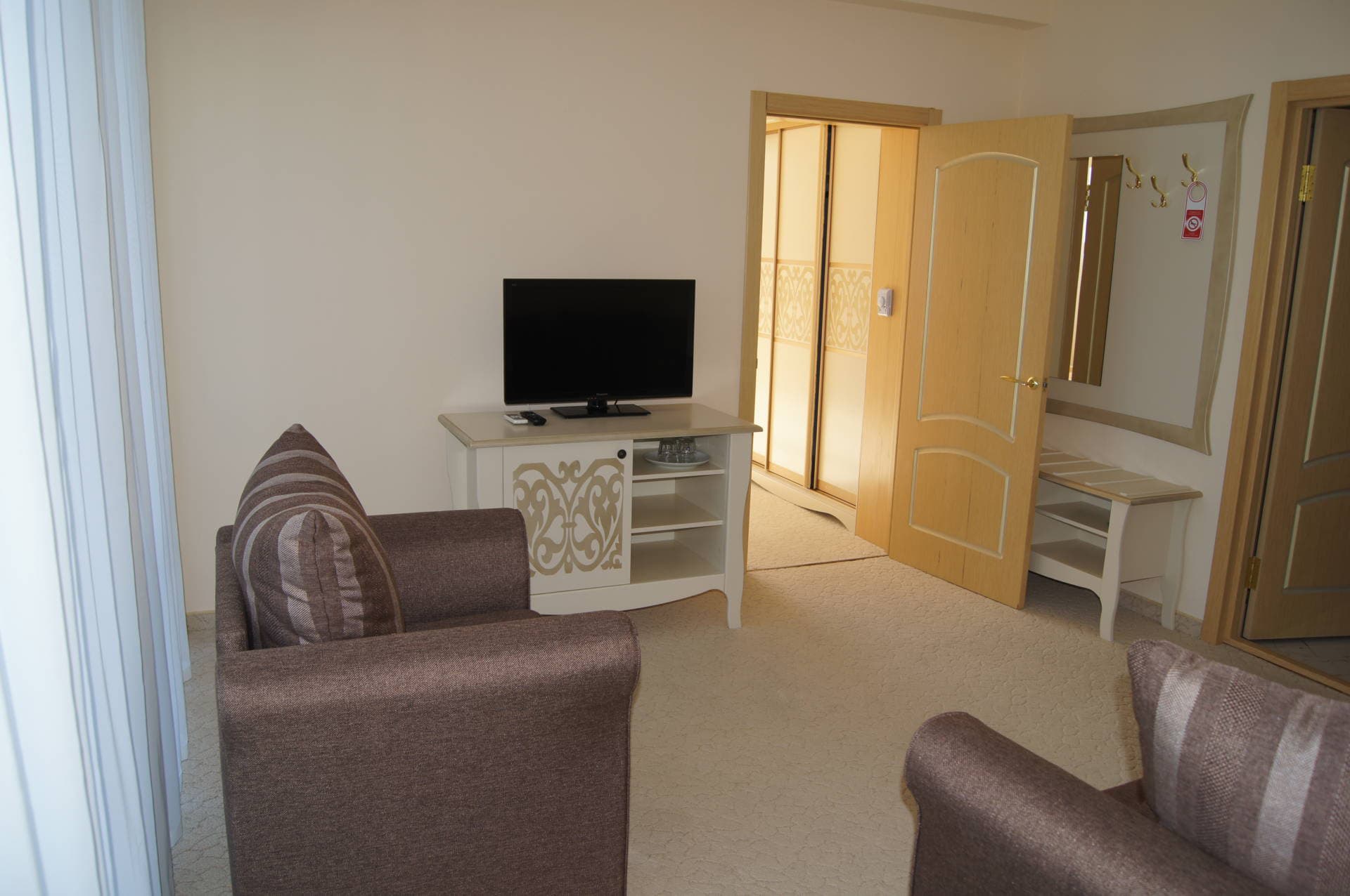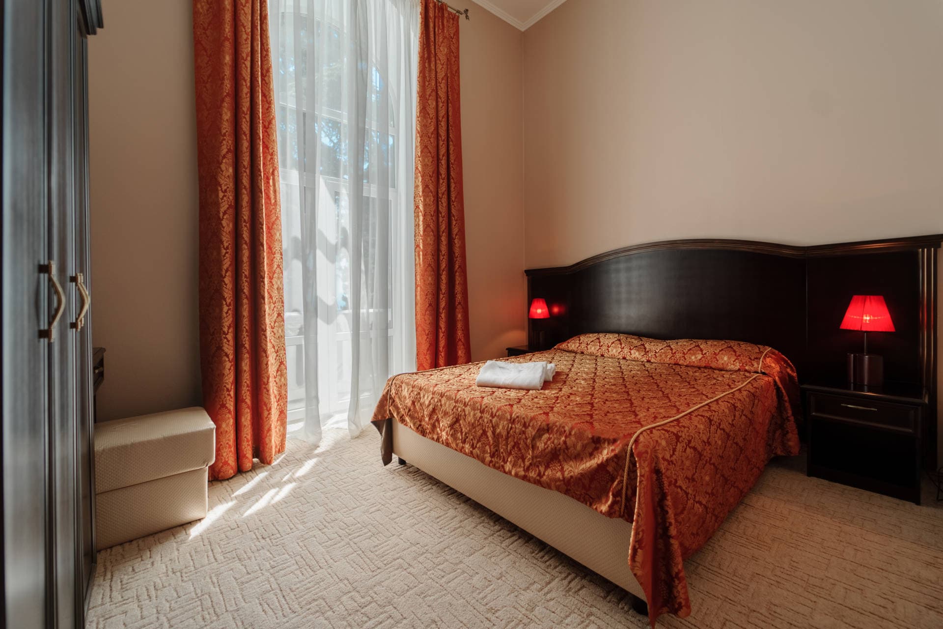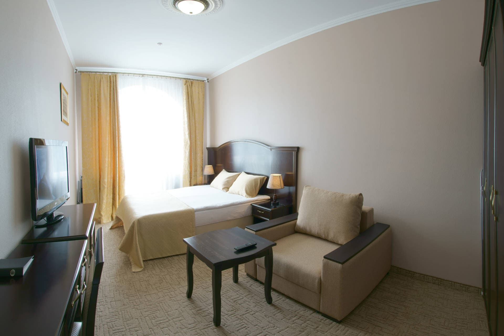 97 номеров, ресторан, открытый бассейн, SPA-центр (финская сауна, бассейн, массажный кабинет, фитобар), спортивная площадка, конференц-зал (до 100 человек), Wi-Fi доступ в Интернет, детская площадка.