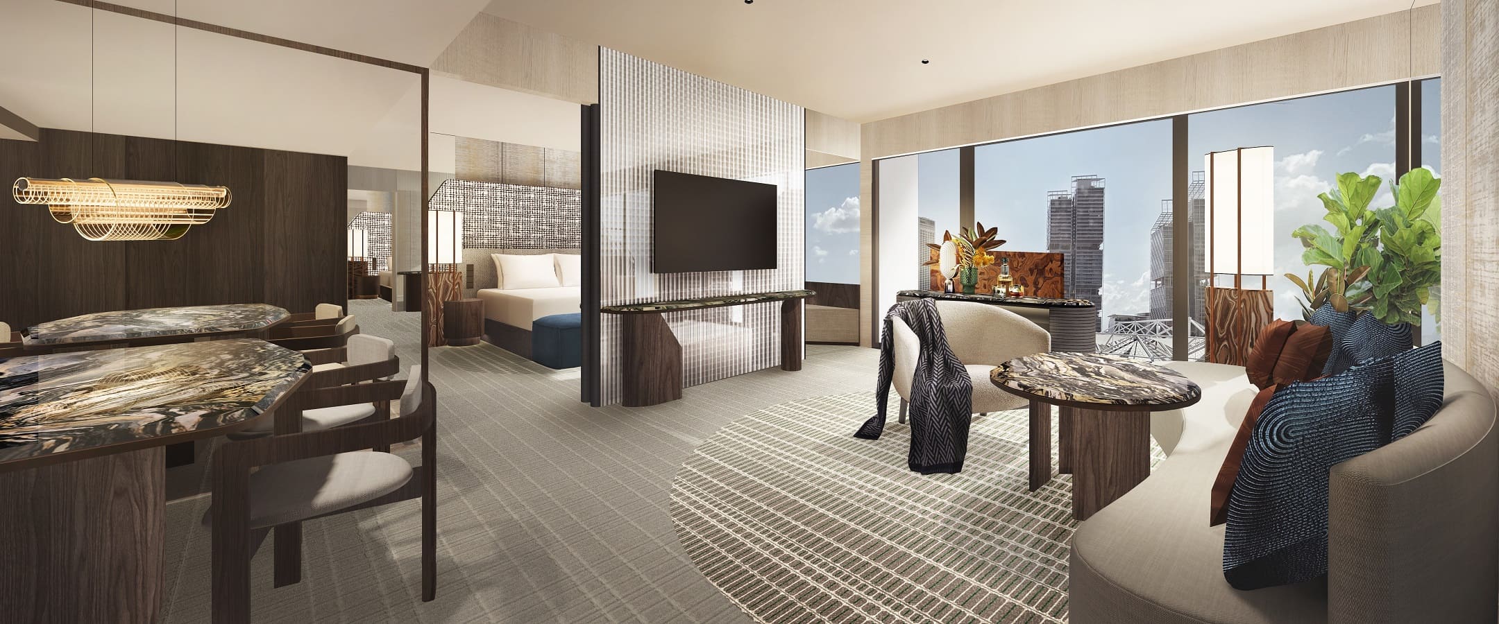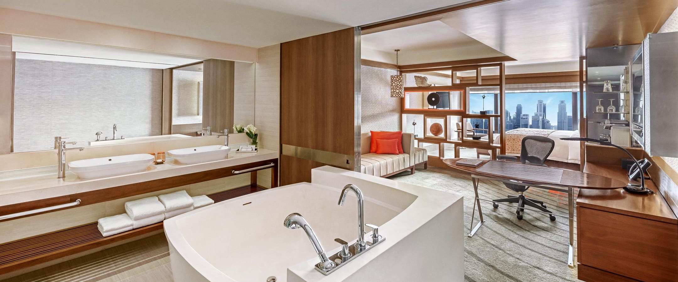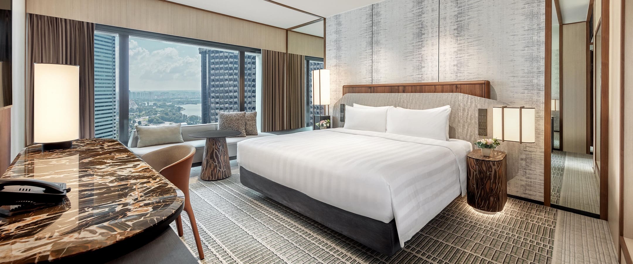 775 номеров, 4 ресторана (итальянская, японская, китайская кухни), бар, открытый бассейн, тренажерный зал, аэробика, йога, Спа-центр, сауна, джакузи, массаж, маникюр, бизнес-центр, конференц-залы, услуги няни, магазин сувениров, ювелирный магазин, парковка.