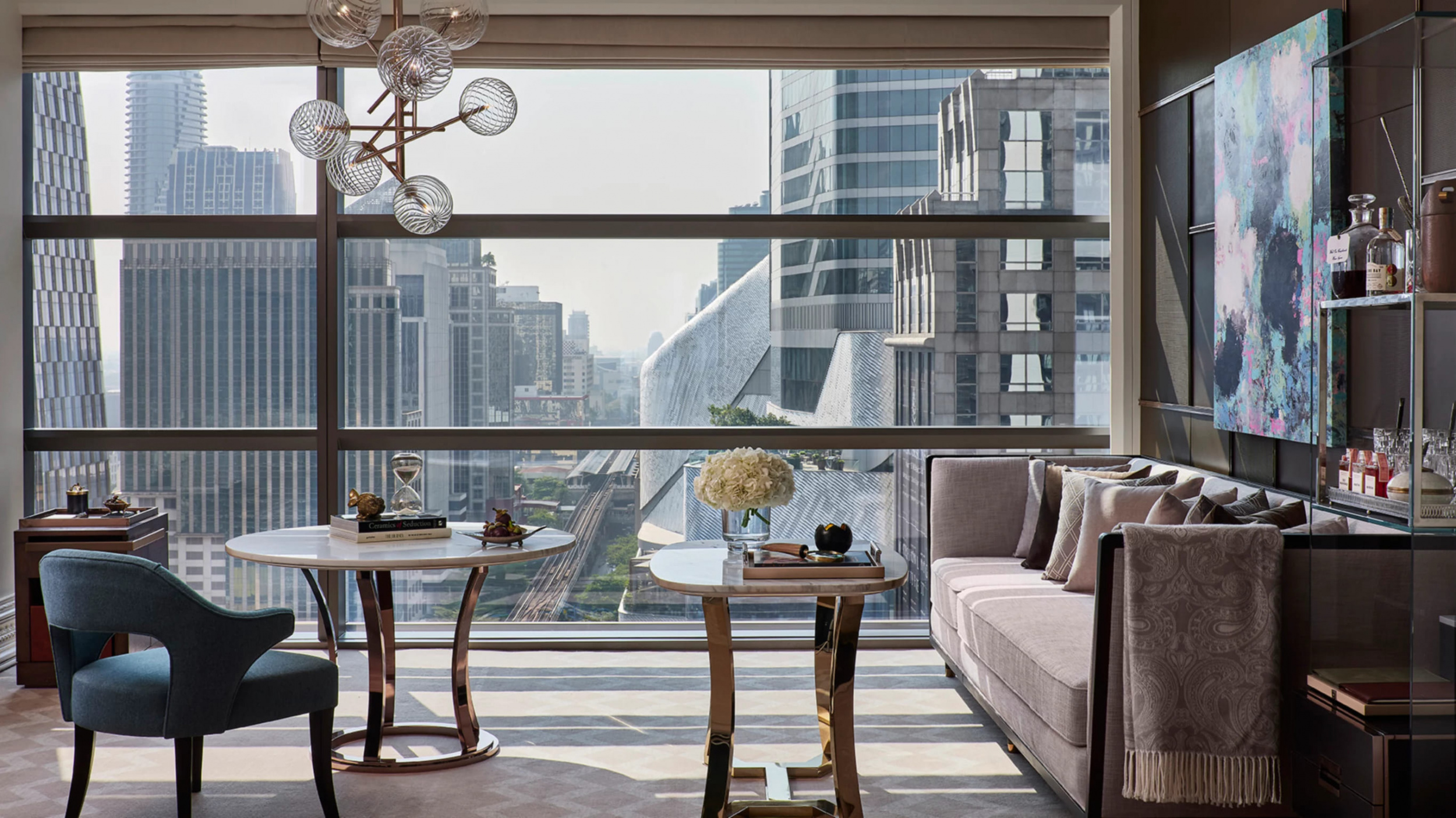 В каждом номере отеля есть шкаф, телевизор с плоским экраном и собственная ванная комната. В номерах отеля Rosewood Bangkok обустроен гостиный уголок.