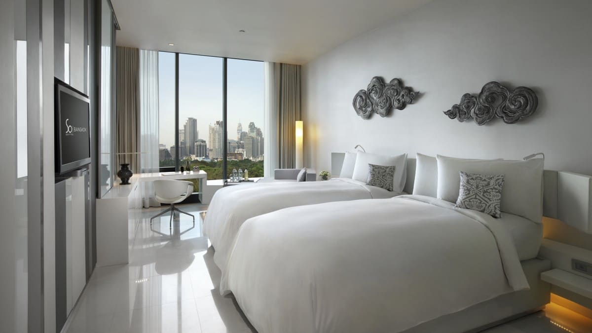 Этот стильный городской отель отличается потрясающим дизайном интерьера, отражающим 5 природных элементов: воду, землю, дерево, металл и огонь. К услугам гостей отеля So Sofitel Bangkok, занимающего 30-этажное здание, номера с компьютерами Apple Mac Mini и люксы с планшетами iPad. В тематически оформленных современных и элегантных номерах установлены окна от пола до потолка, через которые открывается вид на город или парк Люмпини. В каждом номере имеются такие удобства, как бесплатный Wi-Fi, бесплатный мини-бар и 40-дюймовый телевизор с плоским экраном. В ванных комнатах есть ванна и отдельный тропический душ. В спа-салоне мирового уровня SoSpa, выполненном в виде мифического леса, можно посетить расслабляющие массажные процедуры или восстановить силы в одной из гидромассажных ванн. Кроме того, к услугам гостей открытый бассейн и хорошо оборудованный фитнес-центр. Кроме того, по предварительному запросу гости могут взять напрокат велосипеды. На крыше отеля работает фешенебельный бар-ресторан Park Society, где подают блюда изысканной кухни. В ресторане Red Oven готовят блюда интернациональной кухни в присутствии гостей. Также на территории отеля можно посетить 3 бара и кафе Chocolab.