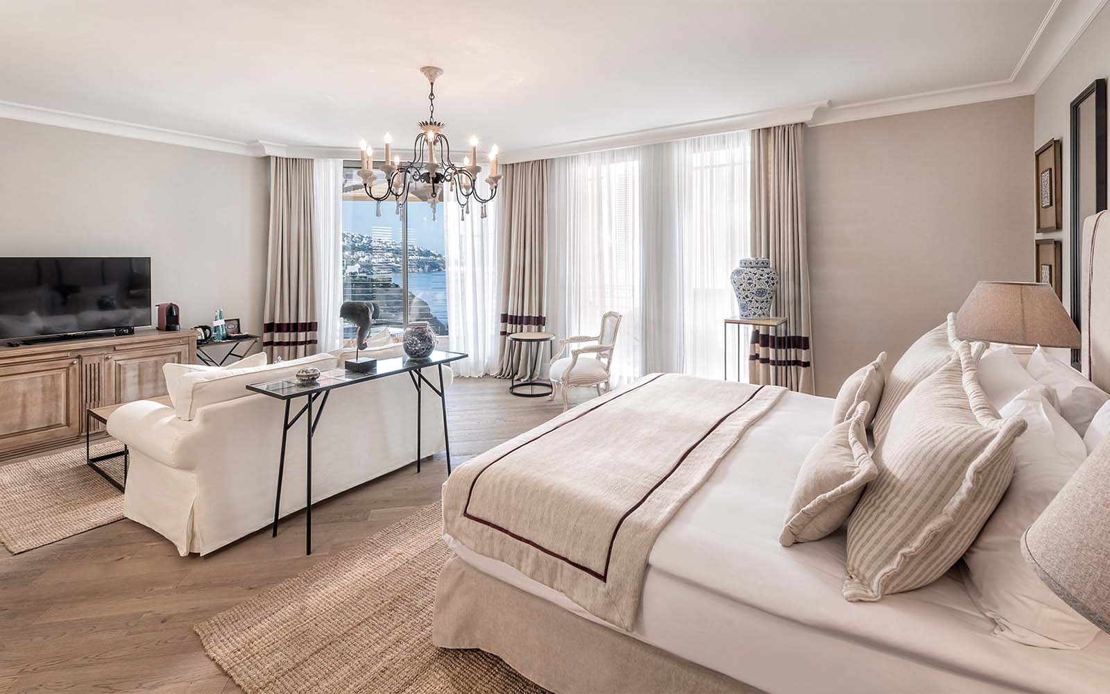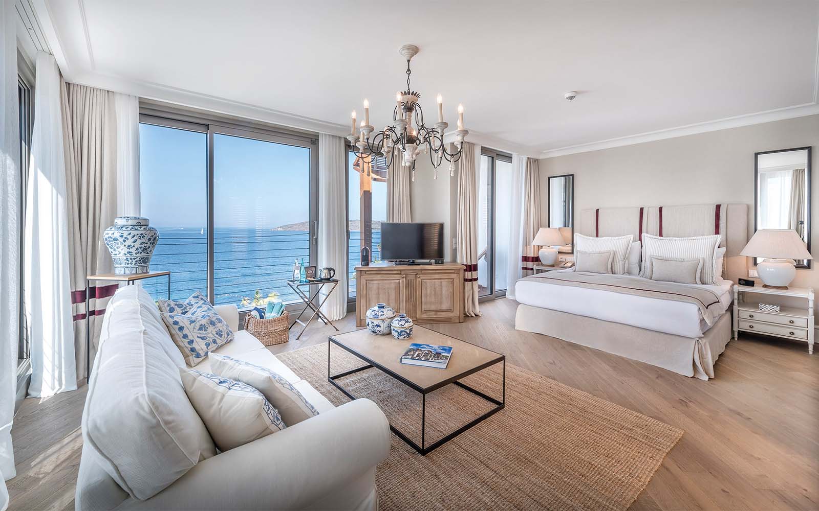 Marine suite (56 кв. м): балкон, гостиная, спальня с кроватью king-size, ванная комната. Вид на бухту. Возможно объединение номеров.