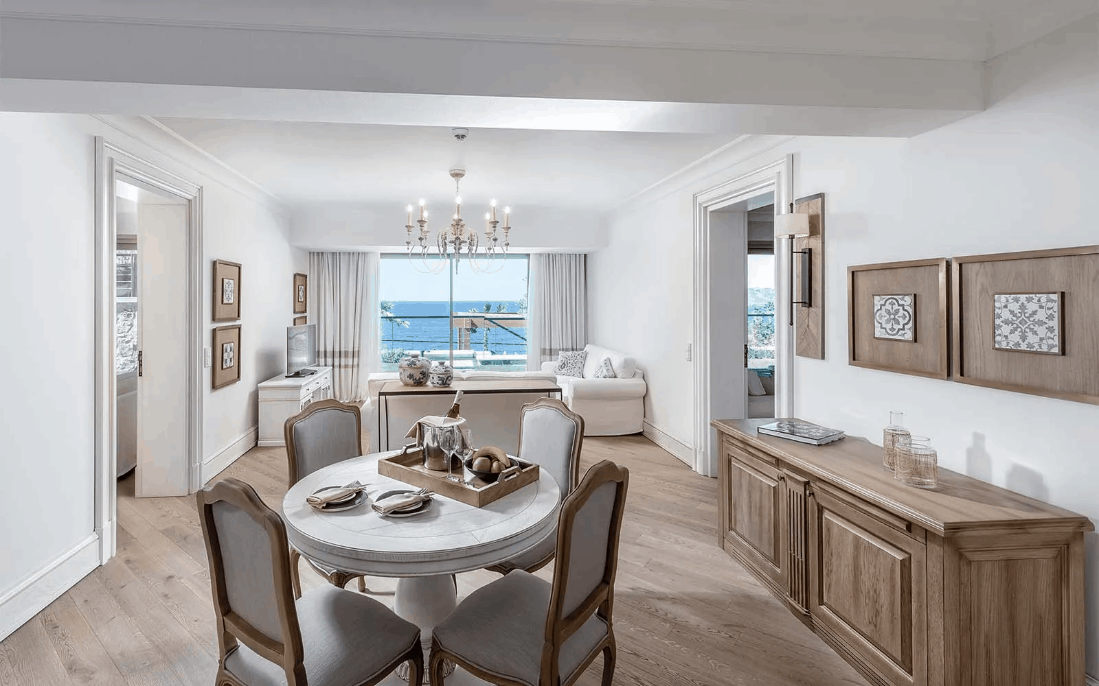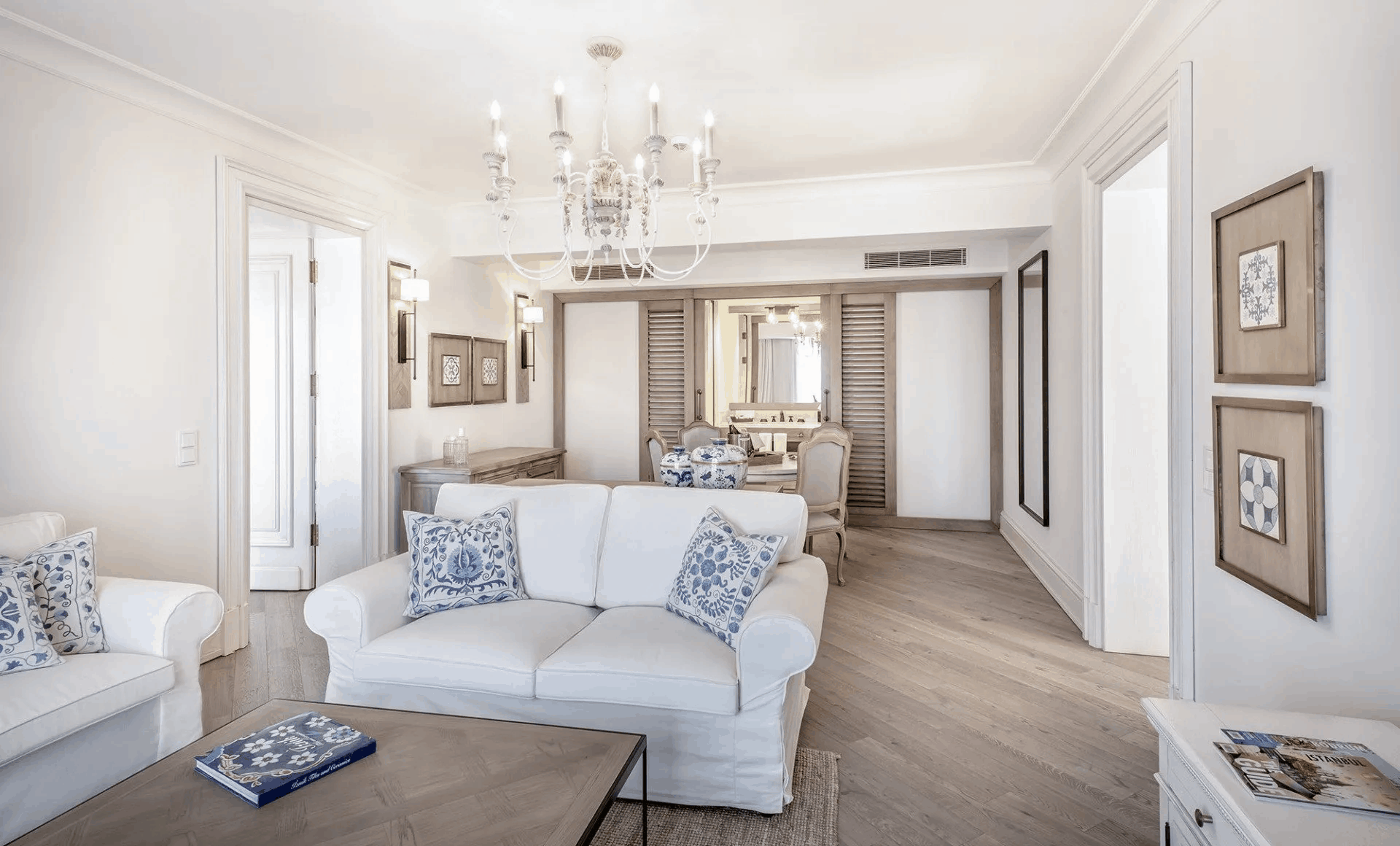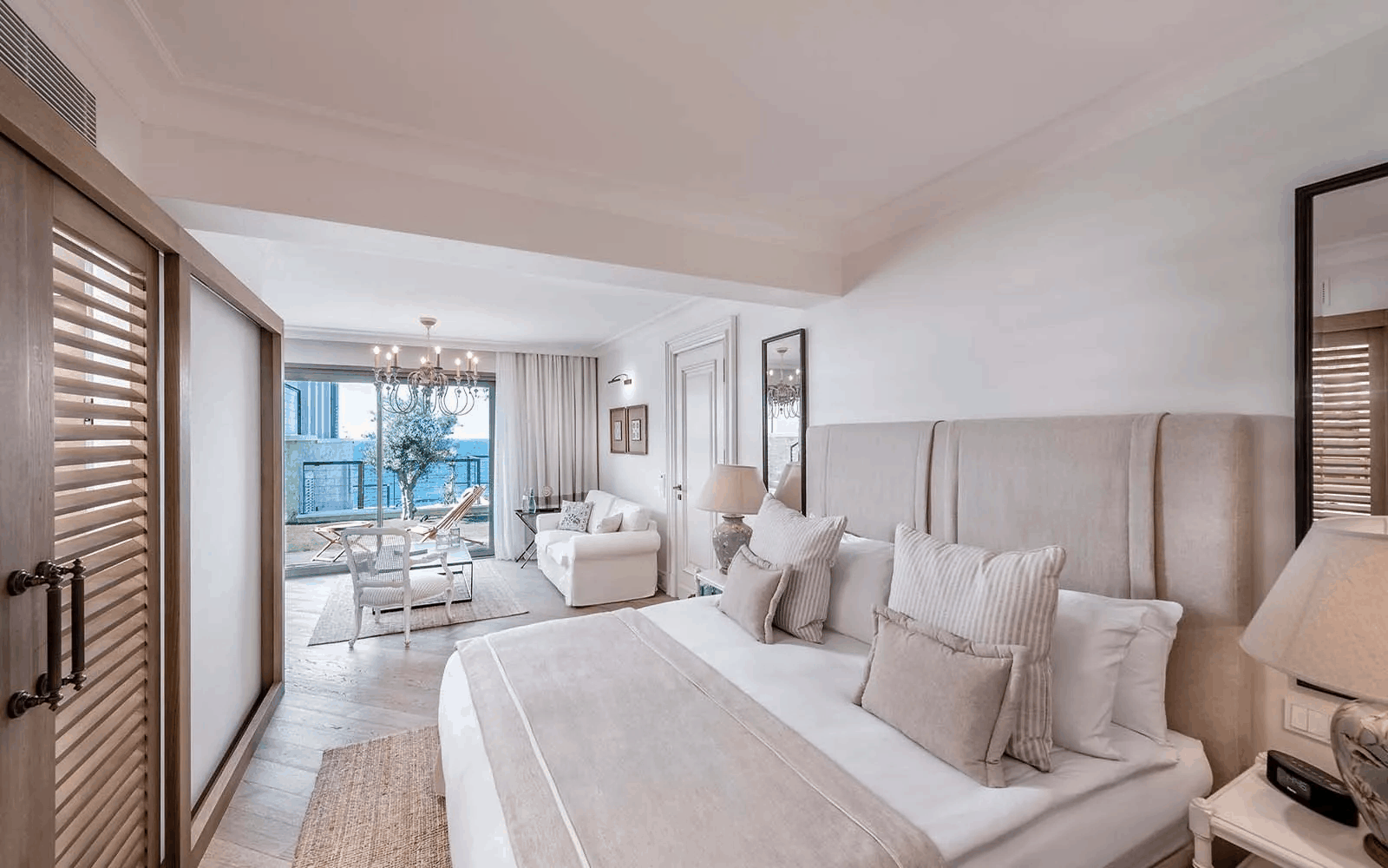 Azure garden suite (75 кв. м): гостиная, спальня с кроватью king-size, ванная комната. Выход в сад. Возможно объединение с номером категории Deluxe garden room.