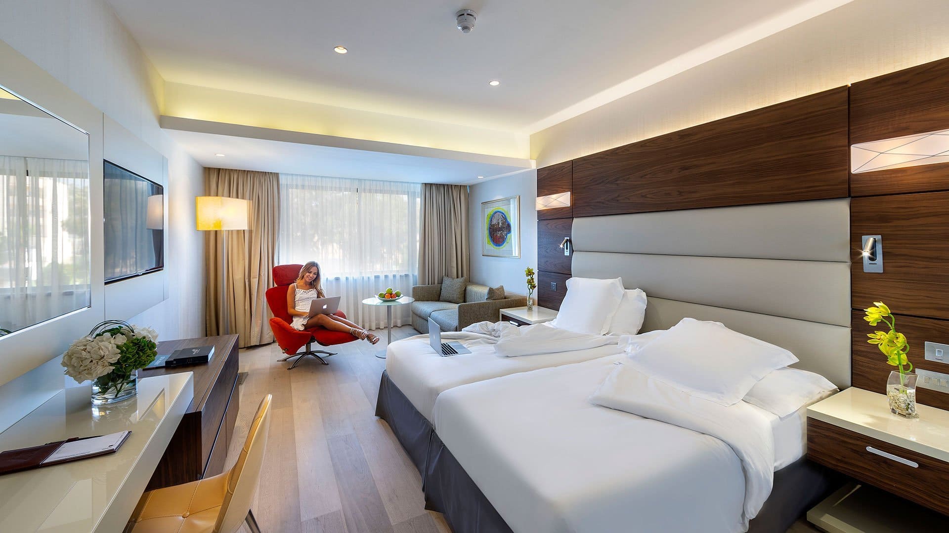 5 ресторанов, 3 бара, 2 открытых бассейна с пресной водой, закрытый подогреваемый бассейн с морской водой, детский бассейн, SPA-центр, парикмахерская, тренажерный зал, аэробика, 2 освещаемых теннисных корта, настольный теннис, водный спорт, детский клуб, бизнес-центр, конференц-залы с современным высокотехнологичным оборудованием, Wi-Fi доступ в Интернет, парковка.