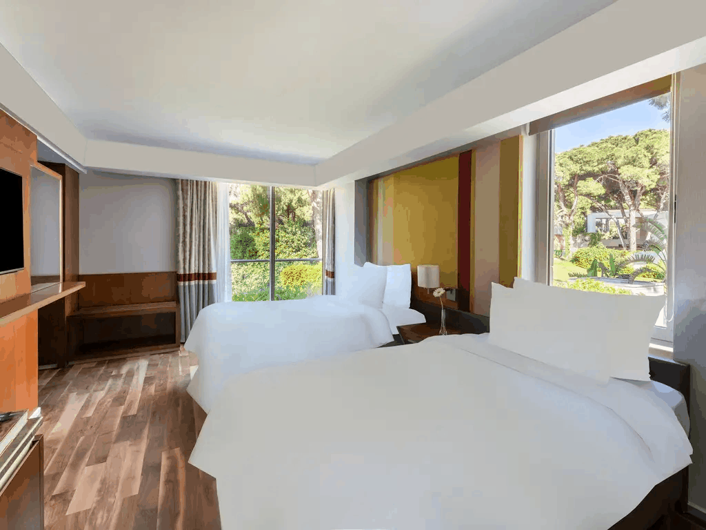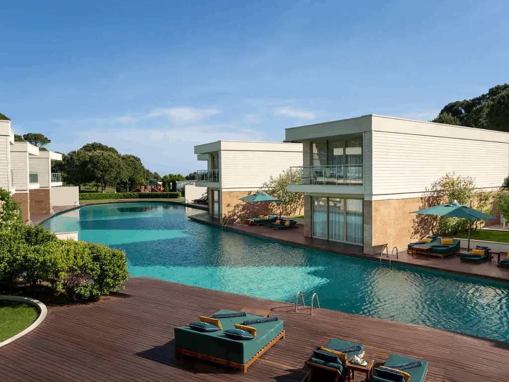 28 двухуровневых Club Villa с отдельным общим бассейном (на первом уровне: гостиная с обеденной зоной и кухней, спальня для няни c дверью, ванная с душем, терраса; на втором уровне: 2 спальни с дверью, 2 ванные комнаты: одна из них с ванной; терраса, отдельный павильон на пляже, 4 ТВ, макс. 5+2 чел., 164 м2).