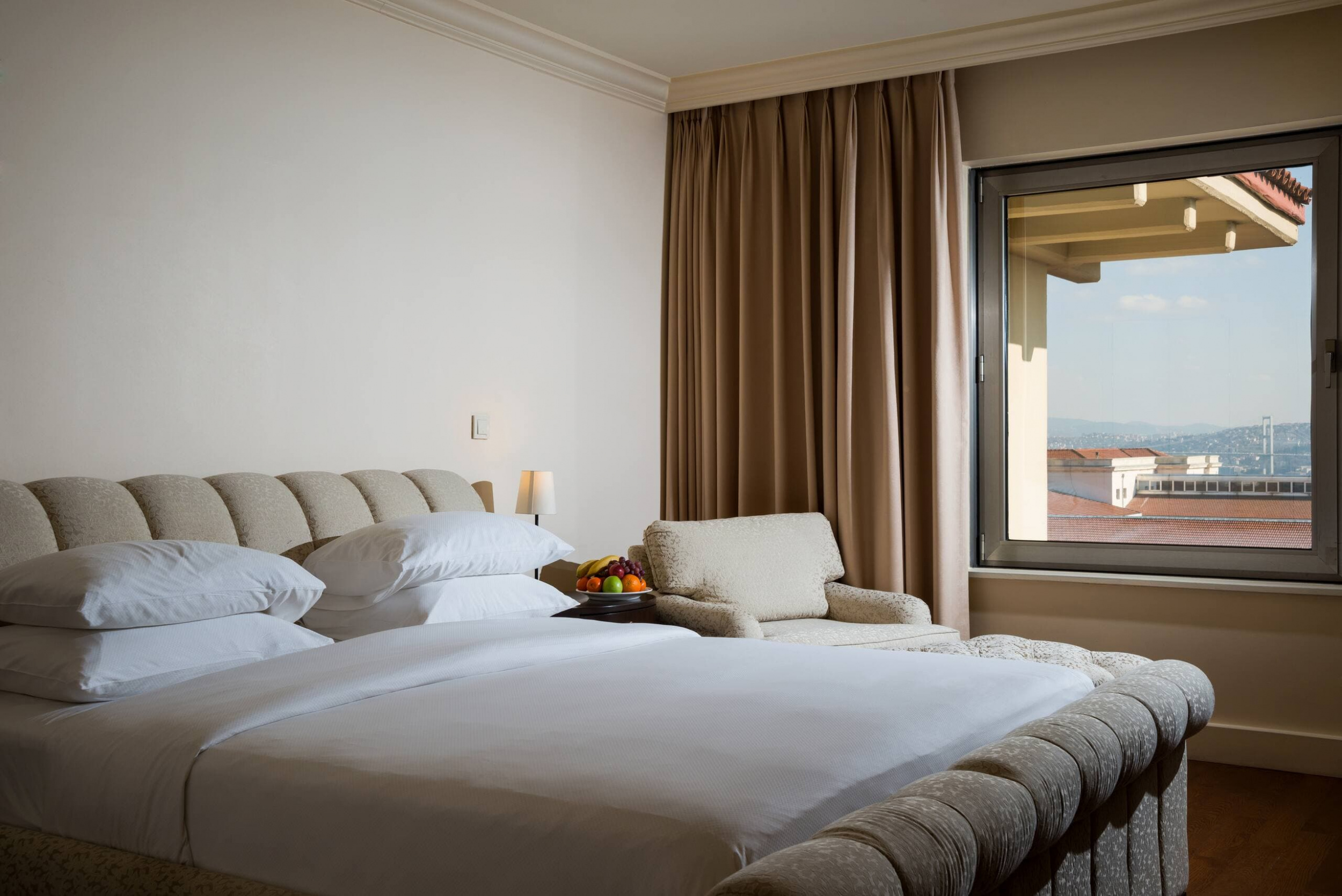 Standard king room (38-42 кв. м): спальня с кроватью king-size, ванная комната с ванной и душевой кабиной с функцией «тропический дождь». Расположены на 3 и 4 этаже. Вид на город, пролив Босфор или бассейн.