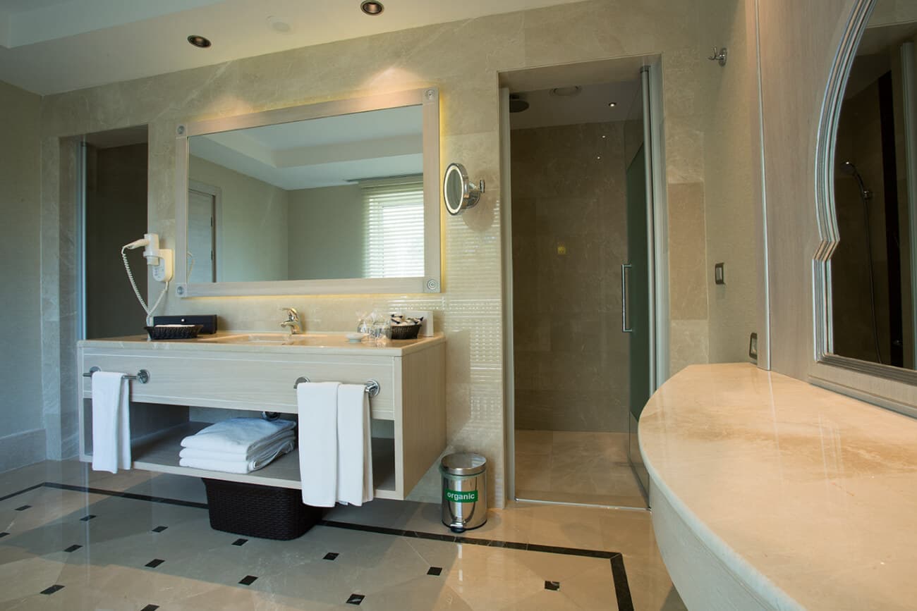 52 однокомнатных Deluxe Superior Room (мягкий уголок, гардеробная, ванная с душем и джакузи, балкон с мебелью, макс. 2+2 чел., 64–66 м2);