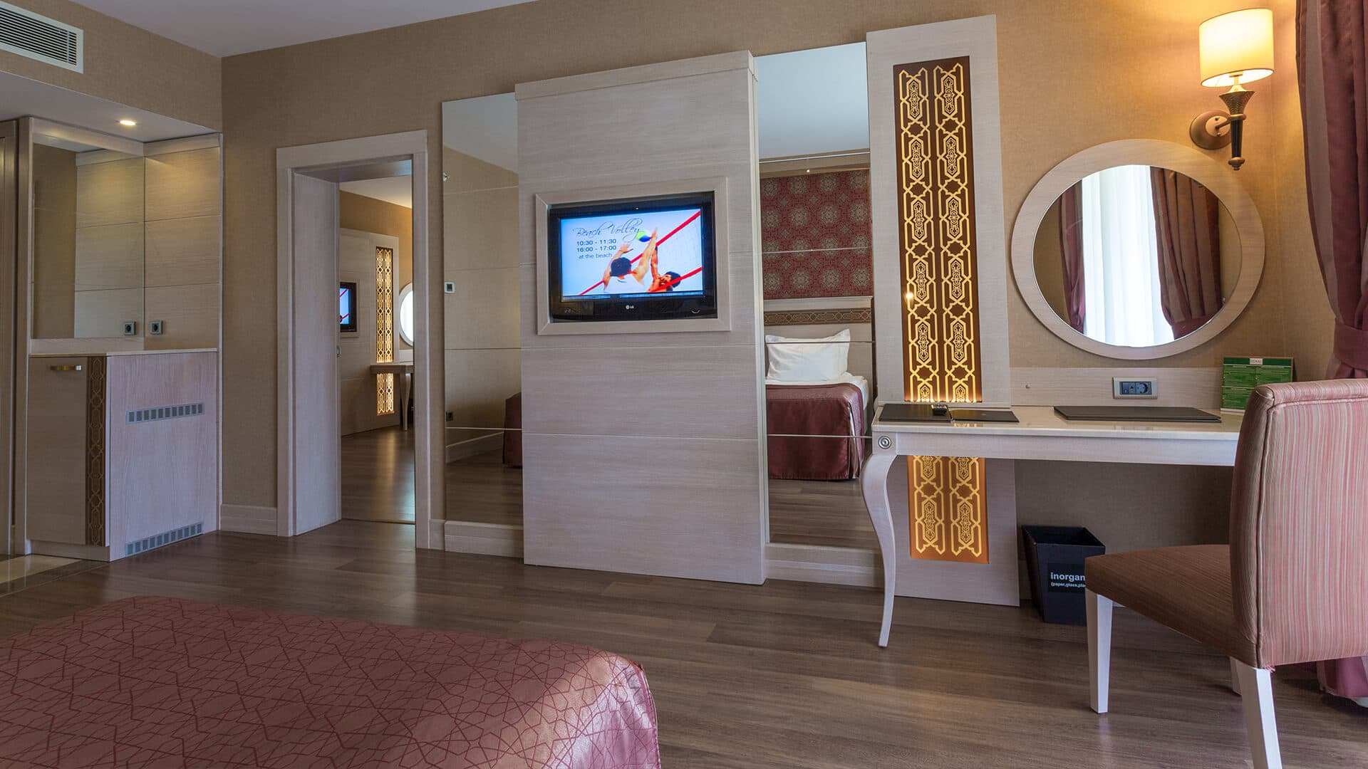 Superior pool grand suite балкон, прихожая, спальня с гостиной зоной, ванная комната. Выход к бассейну.