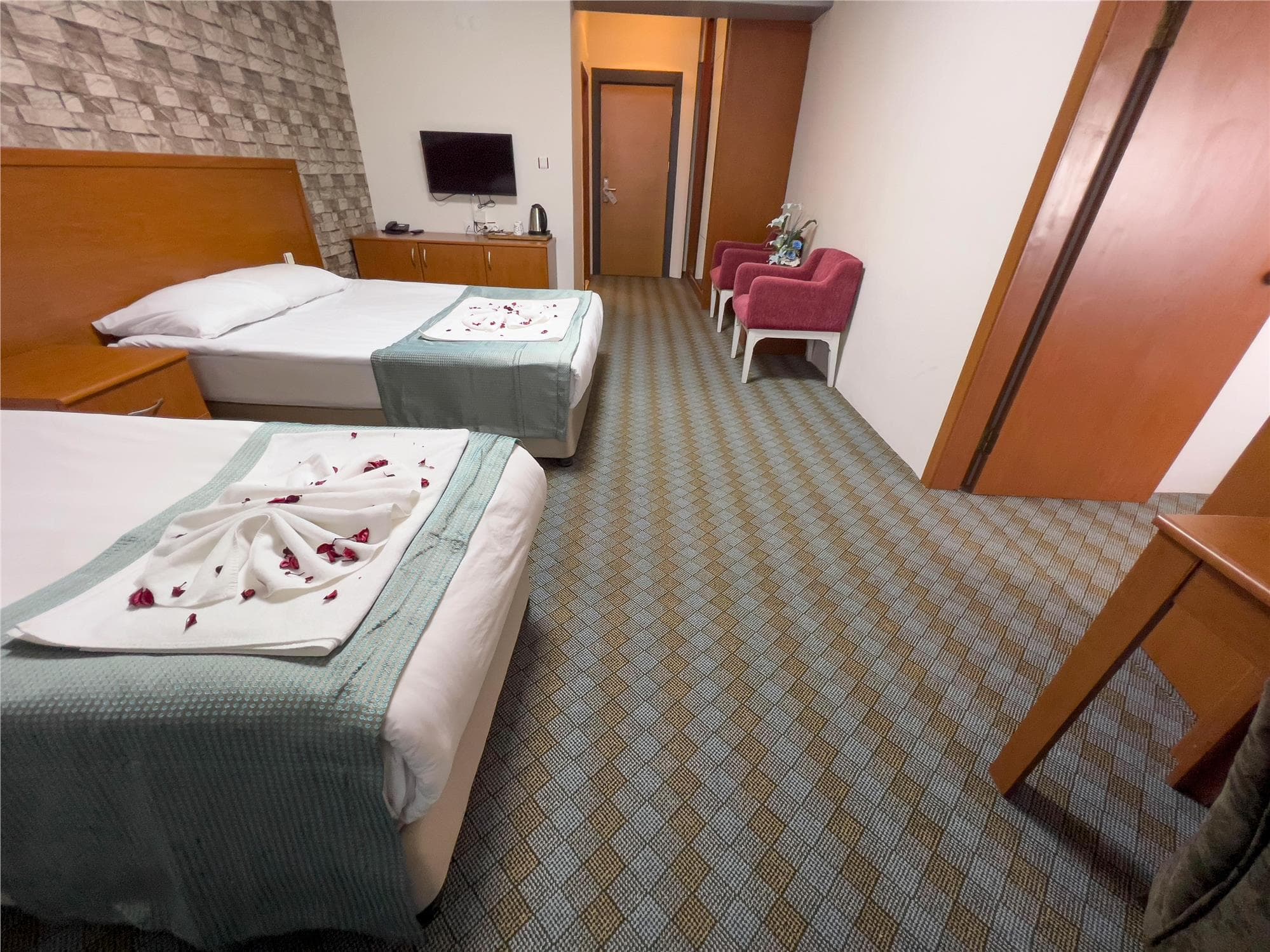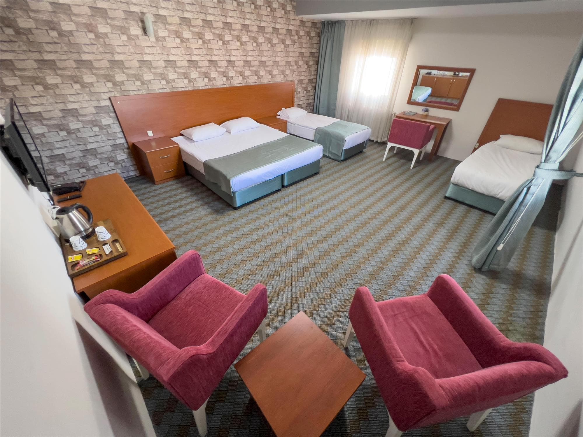 В номере телевизор с плоским экраном и спутниковыми каналами, а также собственная ванная комната с феном и душем. Все номера оснащены письменным столом и чайником.