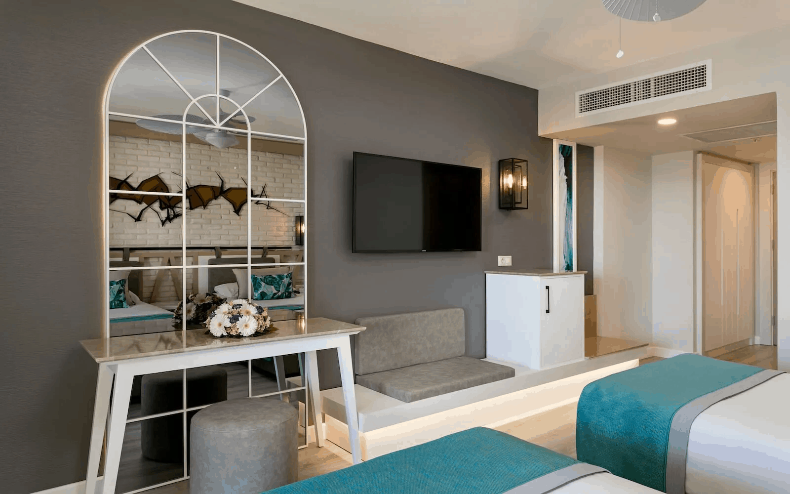 Семейные номера: номера состоят из 2-х комнат, спальной и гостиной. Ванна, телефон, душ, Wi-Fi, ламинат, минибар, центральный кондиционер / отопление, стул.