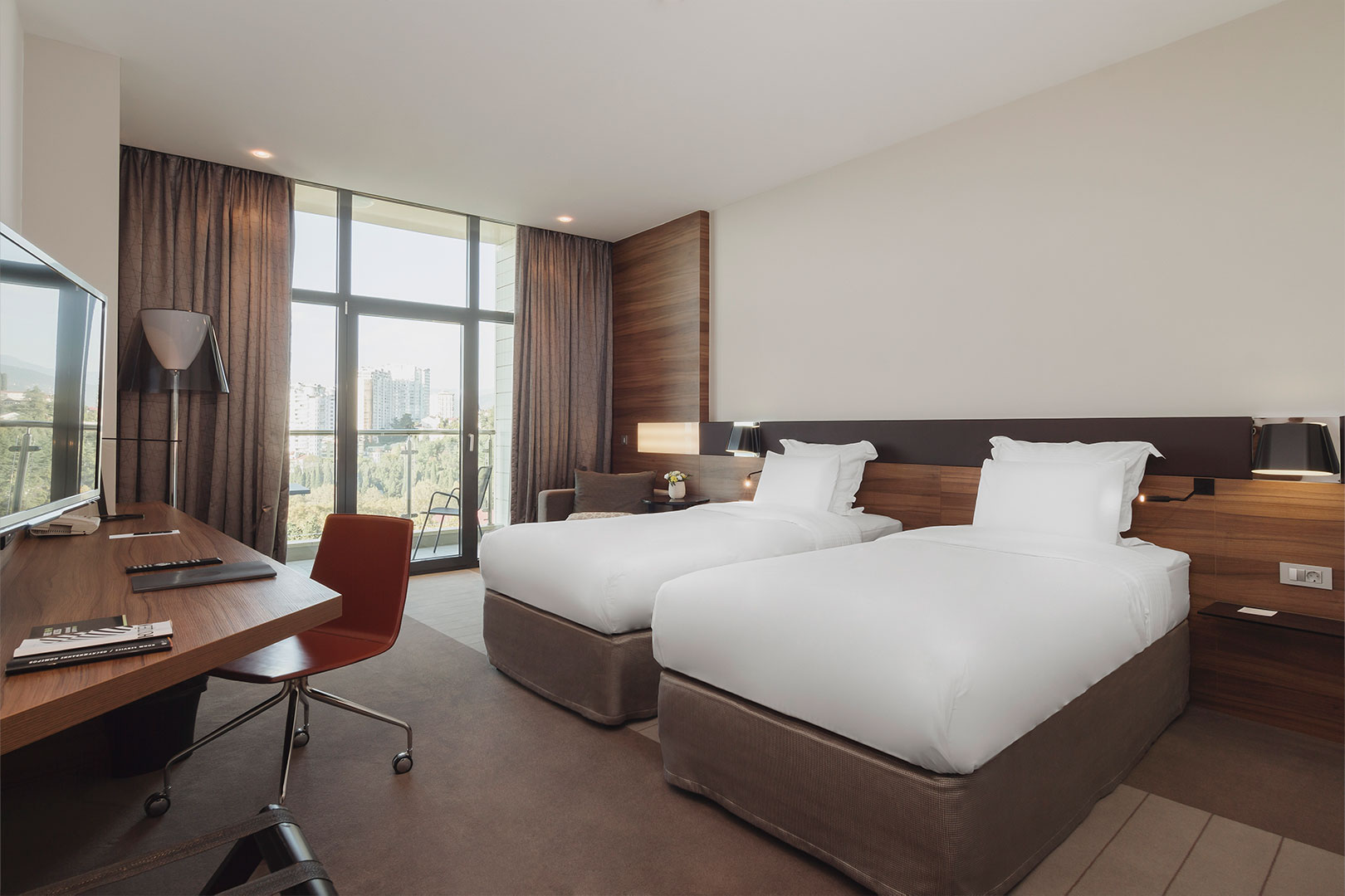 150 номеров, рестораны, бар, сезонный открытый бассейн, фитнес-центр, спа-центр, сауна, услуги консьержа, бизнес-центр, конференц-центр.