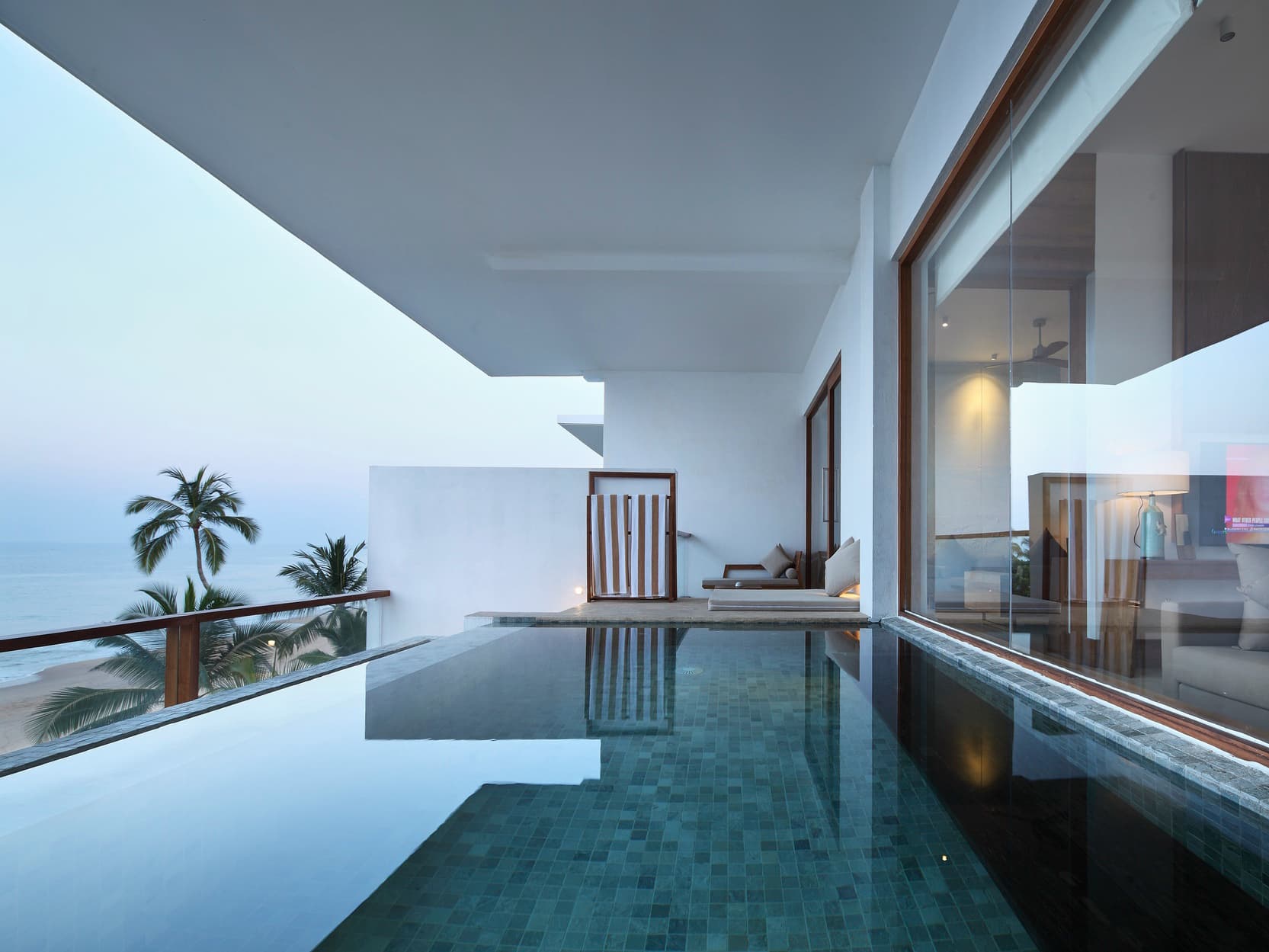 Riff Design Suite (83 кв. м). Номера с панорамным видом на океан, балкон, двуспальная кровать, зона гостиной, дополнительно в номере есть кофе-машина, предлагаются услуги дворецкого, есть соединенные номера с категорией Deluxe Ocean View.