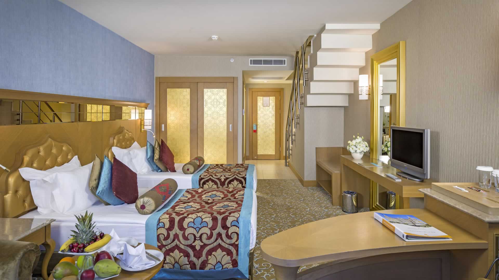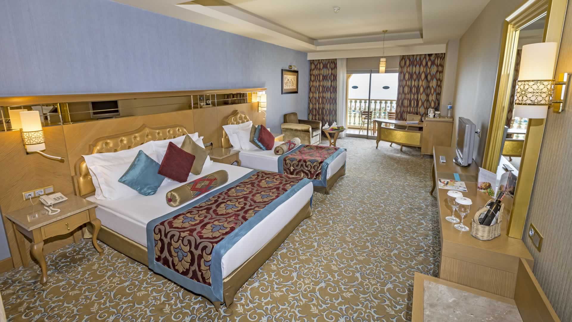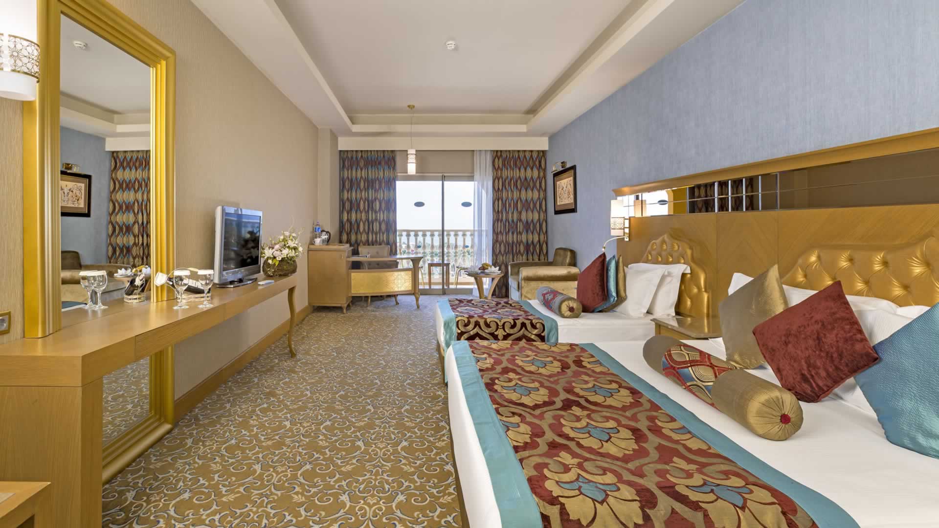 В богатом оформлении номеров курортного отеля Royal Holiday Palace современные удобства сочетаются с традиционными элементами декора. В распоряжении гостей бесплатный Wi-Fi, телевизор с плоским экраном и спутниковыми каналами, мини-бар и принадлежности для чая/кофе.