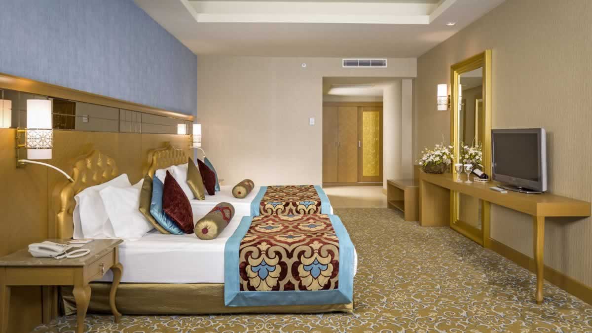 Этот роскошный 5-звездочный курортный отель находится на пляже Лара в городе Анталья, в окружении ландшафтного сада площадью 5,3 га. К услугам гостей спа-центр, открытые бассейны с водными горками и парк аттракционов.