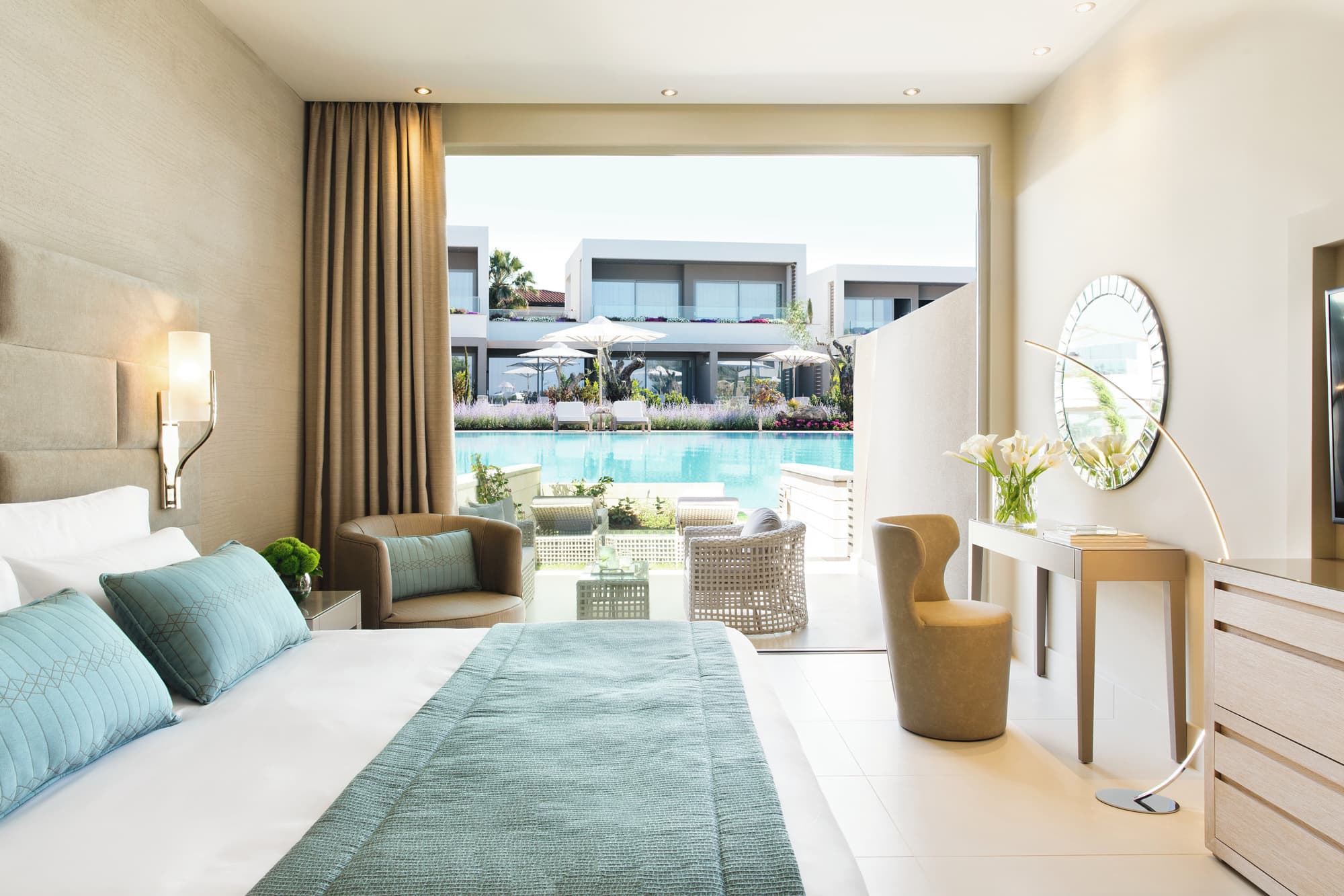Все номера отеля Sani Dunes оформлены в современном стиле с изысканными штрихами средиземноморской элегантности. Из окон открывается вид на Эгейское море или бассейн. Среди других спортивных объектов настольный теннис, площадка для пляжного волейбола и поле для мини-футбола. На частном пляже предоставляются большие зонтики и роскошные матрасы.