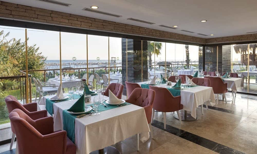 В распоряжении гостей 5 ресторанов, 4 бара и кафе курортного отеля, где вам на открытом воздухе или в помещении подадут блюда турецкой и интернациональной кухни. В барах можно заказать разнообразные алкогольные и безалкогольные напитки.