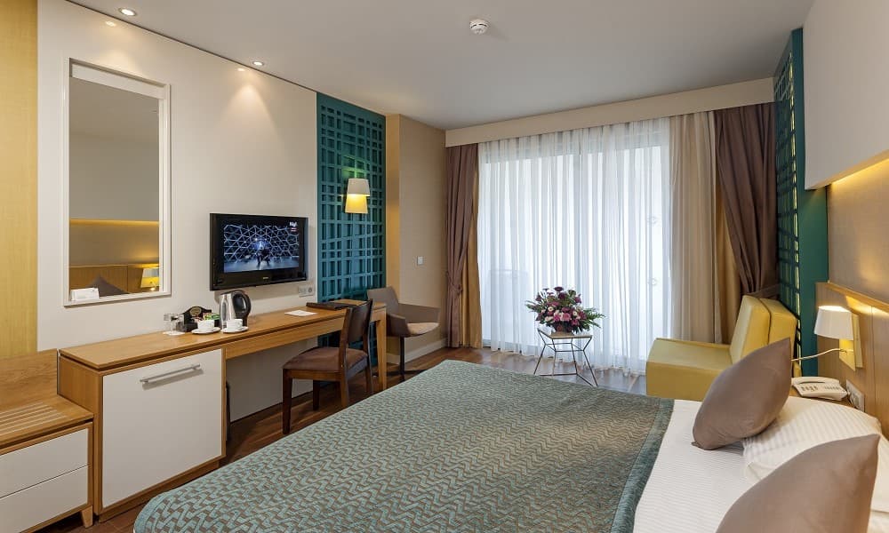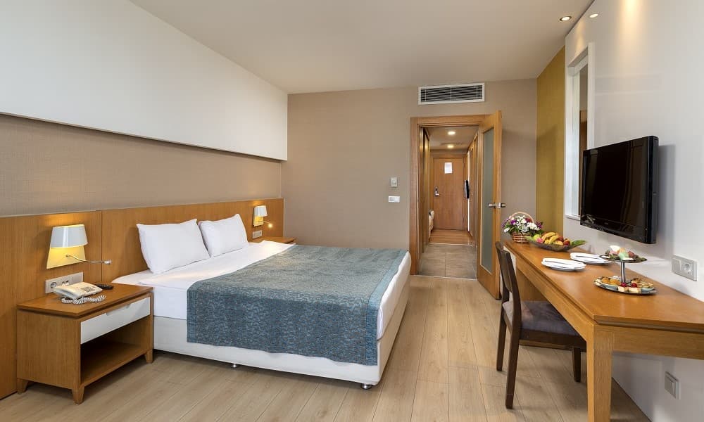 Современные номера курортного отеля Sherwood оборудованы кондиционером, спутниковым телевидением, мини-баром, а также балконом с видом на сад, бассейн, горы или Средиземное море. В некоторых номерах установлена собственная гидромассажная ванна.