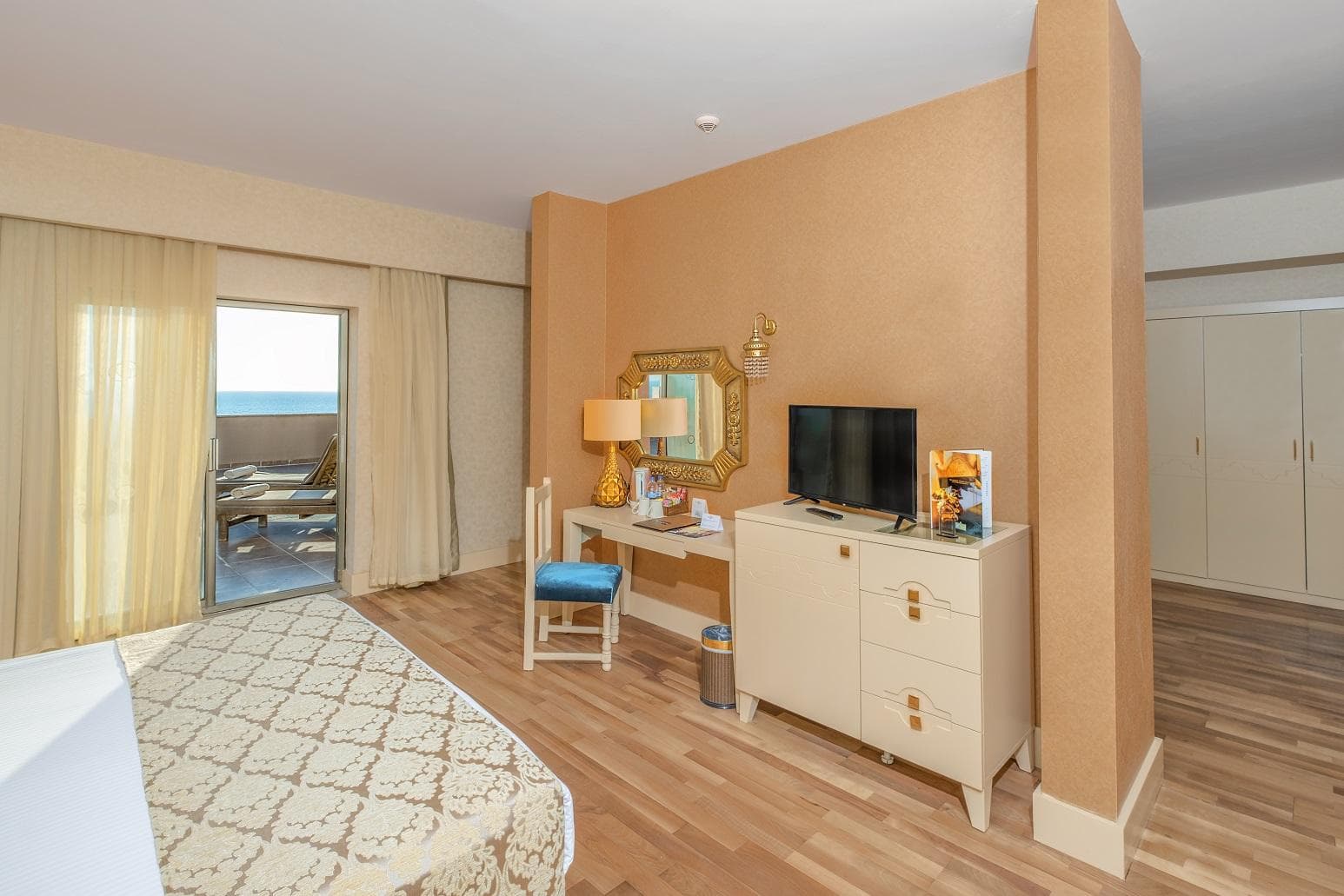 Курортный отель в восточном стиле находится в приморском городе Белек. К услугам гостей роскошные номера с балконом и виллы с собственным бассейном. В числе удобств отеля бассейны с водными горками и прямой выход к песчаному пляжу на Средиземном море. В спа-центре Spa-Ice с сауной и традиционным турецким хаммамом можно заказать различные массажные и косметические процедуры. Также в отеле работают крытый полуолимпийский бассейн с подогревом и тренажерный зал.