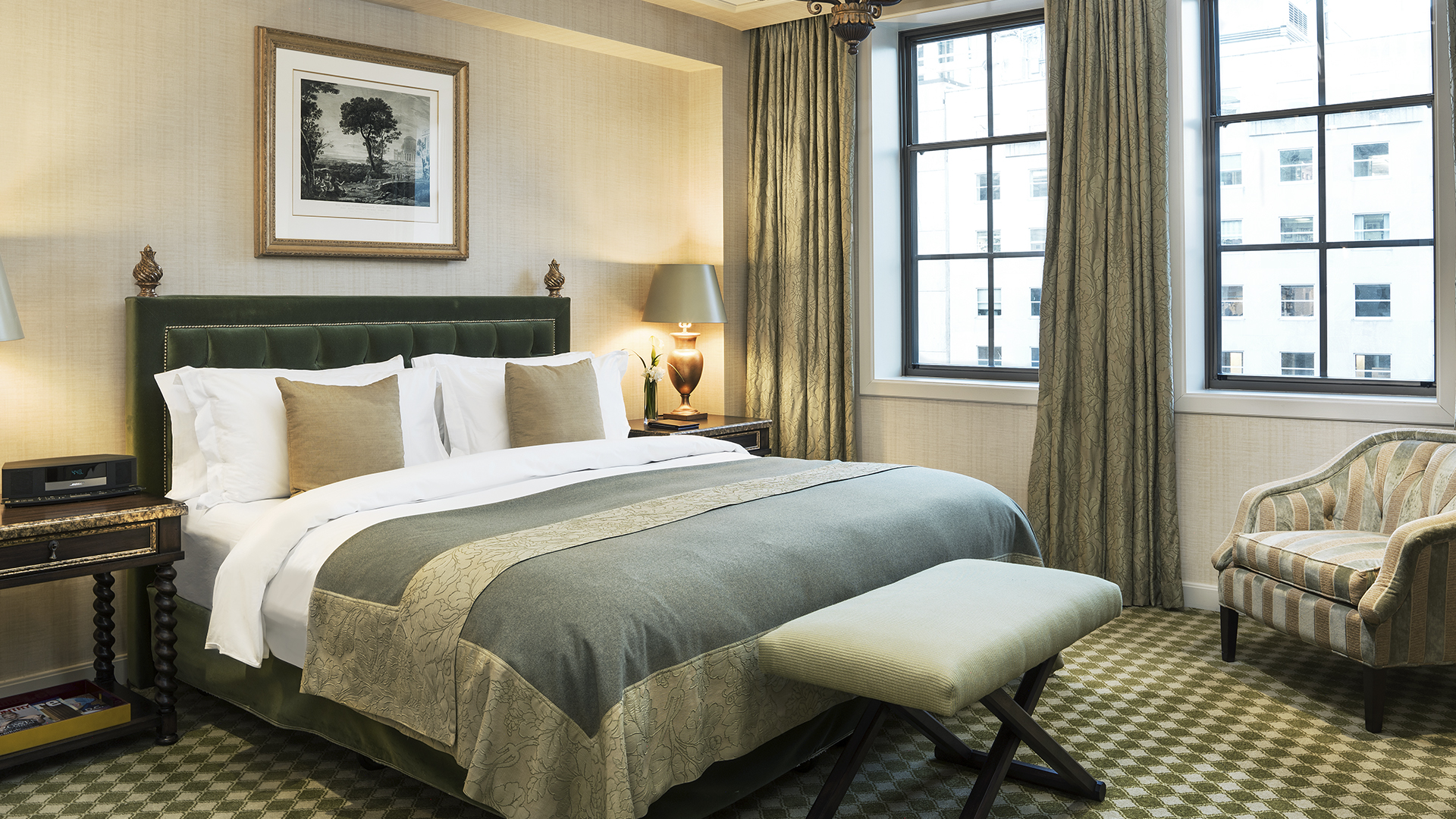 John Jacob Astor suite (97 кв. м). Гостиная с обеденной зоной, спальня с кроватью king-size, гардеробная, ванная комната с ванной и душевой кабиной, гостевой туалет. Вид на 16-ю улицу.