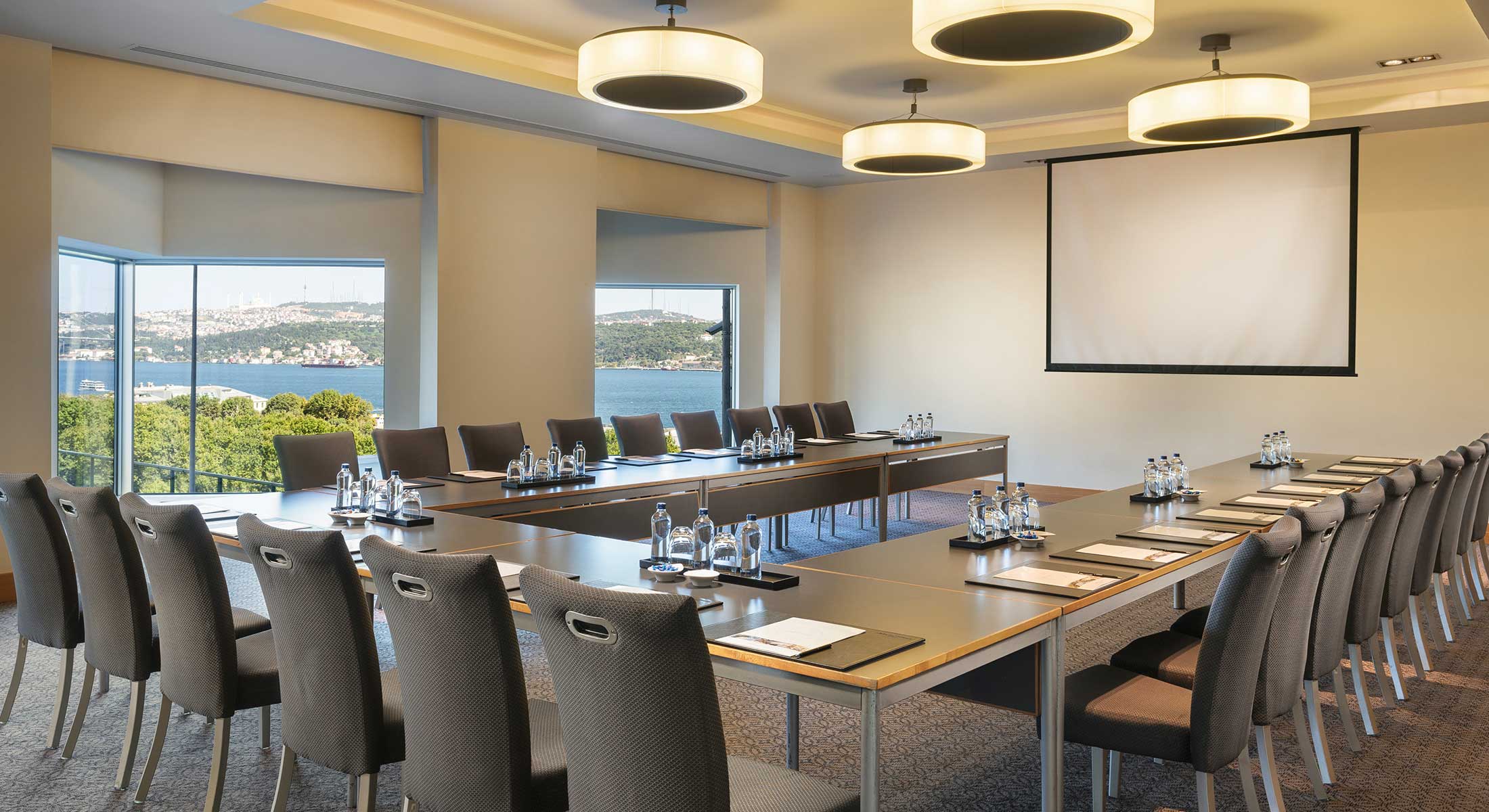 Panorama suite (88 кв. м): спальня с гостиной зоной (кровать king-size), ванная комната с ванной/душем. Дополнительно: аудиосистема Bose, док-станция для iPod, DVD-плеер, факс, принтер, копир. Панорамный вид на пролив Босфор.