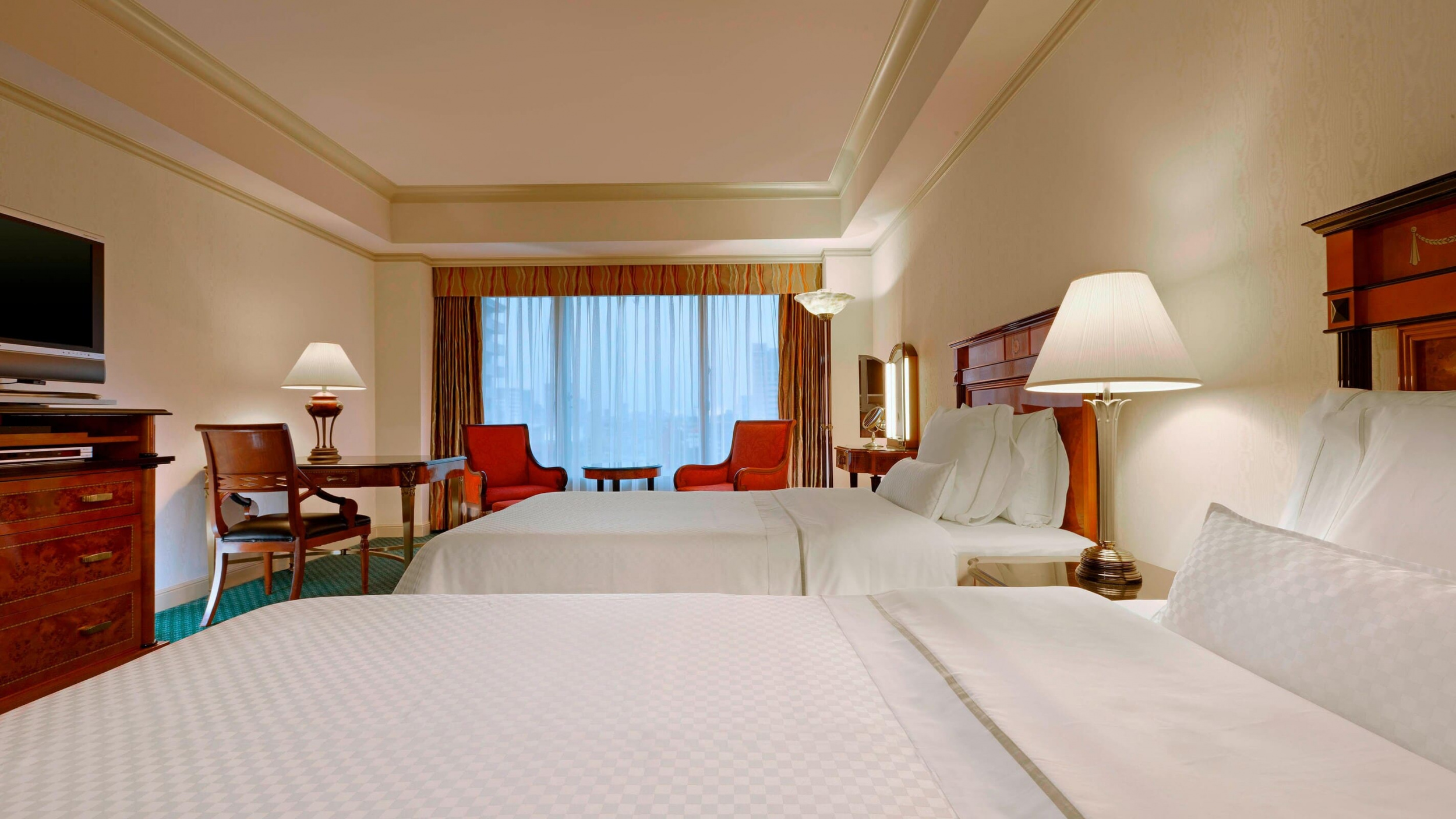 Deluxe Rooms (42 м2.). Номера с кроватью king size или двумя кроватями twin, состоят из спальни и ванной комнаты.