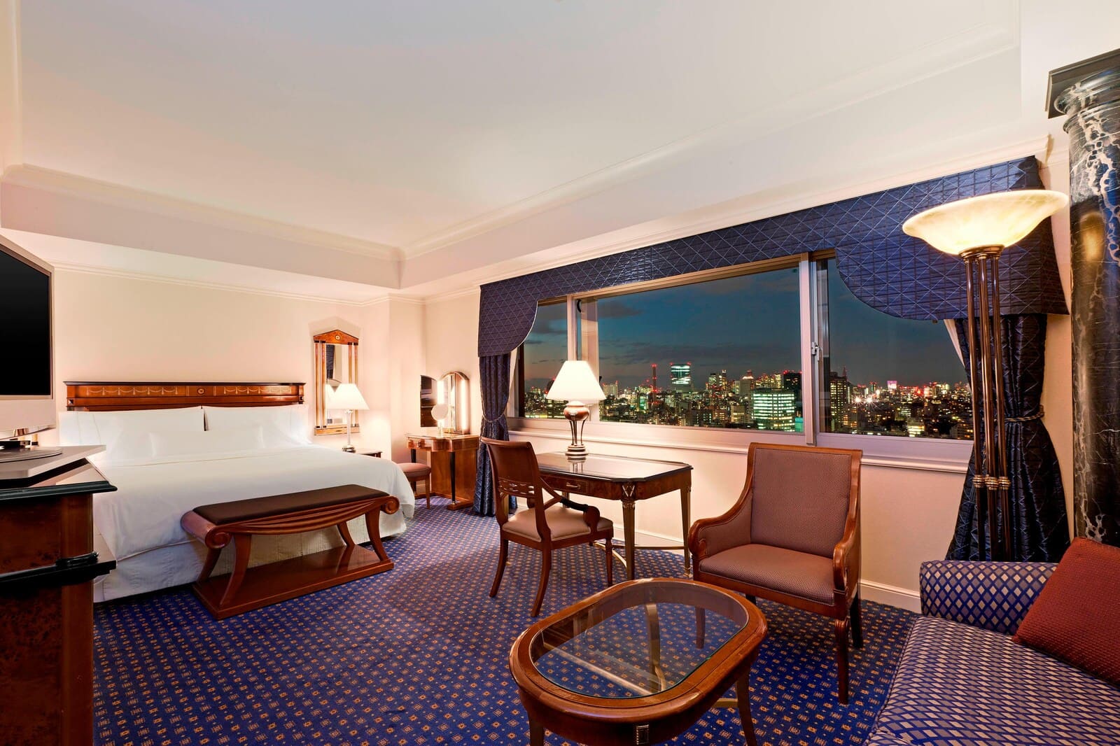 Presidential and Imperial Suites (210 м2.). Presidential Suite расположен на 20 этаже,Imperial Suite расположен на 21 этаже. Номера состоят из гостиной,обеденной зоны, просторной спальни, так же есть гостиный уголок для чтения. Оба номера с видом на центр Токио, Токийскую башню и Радужный мост. Окна в номере от пола до потолка. Бесплатное пользование тренажерным залом,собственная Сауна,собственная мини-кухня.