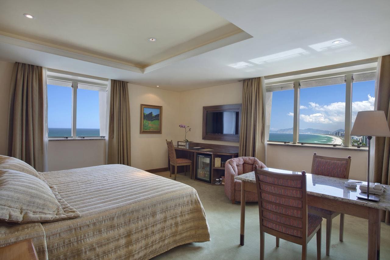 Элегантный и фешенебельный отель с уютными современными номерами. Здесь сразу чувствуешь себя как дома и, не переставая, любуешься безупречным стилем его номеров, оформленных в теплых тонах, богатством отделки и поразительной чистотой вокруг. Windsor Barra находится на сравнительно удаленном от центра города пляже - Бара-да-Тижука (Barra da Tijuca), зато здесь не так шумно и многолюдно. В этой туристической зоне находятся крупнейшие торговые центры города, а также множество ресторанов, кафе и баров. Но прежде, чем выбираться в кулинарное путешествие по побережью, стоит посетить рестораны отеля, где вам предложат множество замечательных блюд бразильской кухни. С верхнего этажа отеля, где расположены бассейн и оздоровительный центр, открывается чудесная панорама моря, а с другой стороны видны горы. Здесь же находится и бар, сидя в котором, можно любоваться волшебными видами за бокалом изысканного вина.