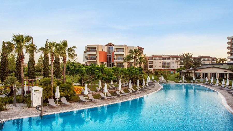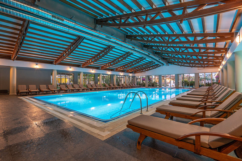 К услугам гостей 8 ресторанов с обслуживанием по меню и спа-центр с турецкой баней. В числе прочих удобств — детский клуб, а также крытый и открытый бассейны с водными горками.